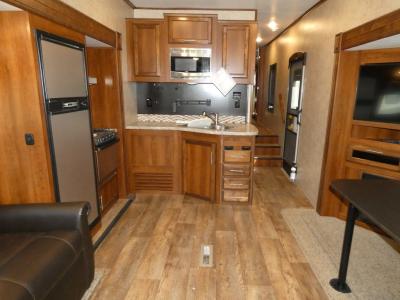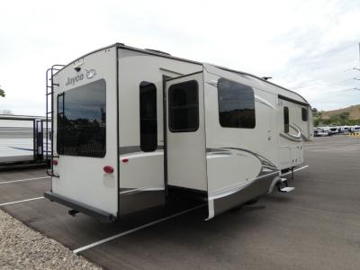 For any camping trip you will want an Eagle HT fifth wheel by Jayco. Along the exterior there is a high-gloss, fiberglass front cap with built-in specialty LED lighting. Inside each model there are handcrafted Sugar Maple glazed drawers. Throughout each model there is Shaw residential carpet with a sound dampening carpet pad plus IVC Trekk wood-plank vinyl flooring. The industry exclusive HELIX cooling system is an added bonus with the Jayco-exclusive insulated duct design, directional and closeable A/C vents, larger return air vents, and the exterior-mounted 15,000-BTU Whisper Quiet A/C unit. The Customer Value Package includes a residential queen Simmons mattress with under-bed storage, an electric patio awning with integrated LED lights, MOR/ryde CRE/3000 rubberized suspension for a smoother ride, a rain proof EZ Breeze bathroom power vent, an industry first Go Power rooftop and ground solar prep, and so much more!