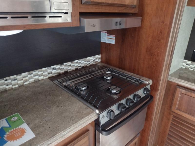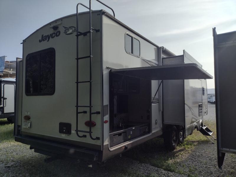 For any camping trip you will want an Eagle HT travel trailer by Jayco. Along the exterior there is a high-gloss, fiberglass front cap with built-in specialty LED lighting. Inside each model there are handcrafted Sugar Maple glazed drawers. Throughout each model there is Shaw residential carpet with a sound dampening carpet pad plus IVC Trekk wood-plank vinyl flooring. The industry exclusive HELIX cooling system is an added bonus with the Jayco-exclusive insulated duct design, directional and closeable A/C vents, larger return air vents, and the exterior-mounted 15,000-BTU Whisper Quiet A/C unit. The Customer Value Package includes a residential queen Simmons mattress with under-bed storage, an electric patio awning with integrated LED lights, MOR/ryde CRE/3000 rubberized suspension for a smoother ride, a rain proof EZ Breeze bathroom power vent, an industry first Go Power rooftop and ground solar prep, and so much more!