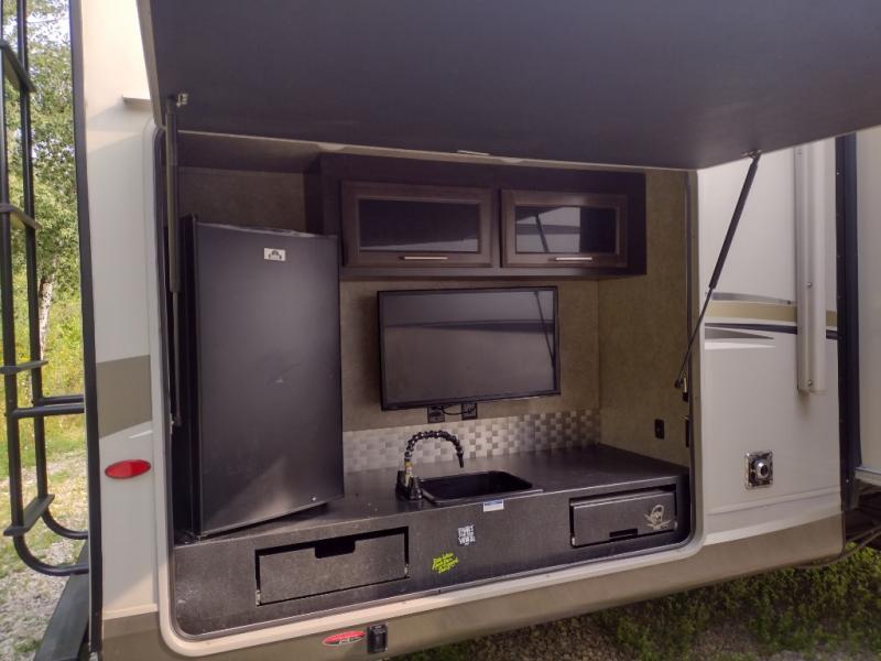 Are you ready for plenty of fun on your next camping adventure? Well, you will want this triple slide out Eagle HT 324BHTS travel trailer. The hardest decision that you have to make is where you are going to prepare your meals inside or outside. The outside kitchen has a refrigerator, sink, and a two burner range. The inside kitchen features an island with a double sink, dual slide outs which help to open up the living space, plus all of the amenities needed to create the meals you enjoy most. Socializing underneath the 18' electric awning with LED lights makes for a perfect ending to your adventurous day. When you are ready to turn in for the night come retreat to the private front bedroom where you will find a queen bed and your kids will enjoy their own space with the rear bunkhouse!