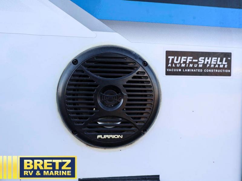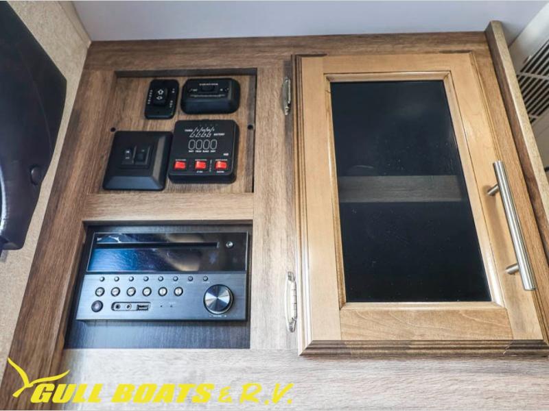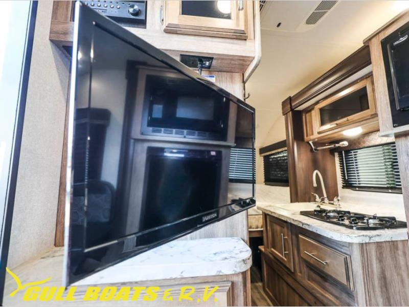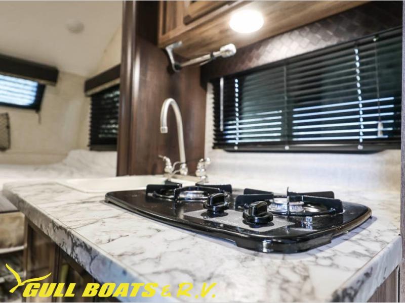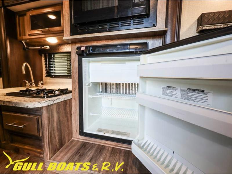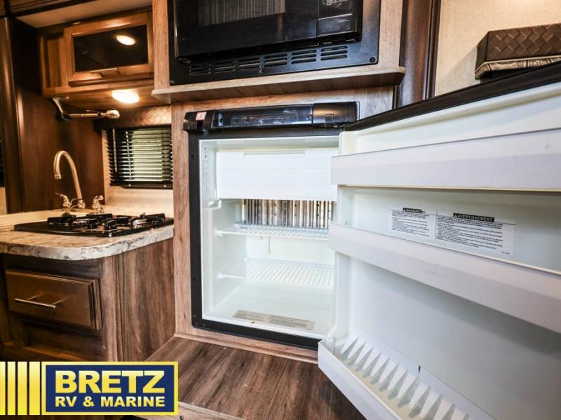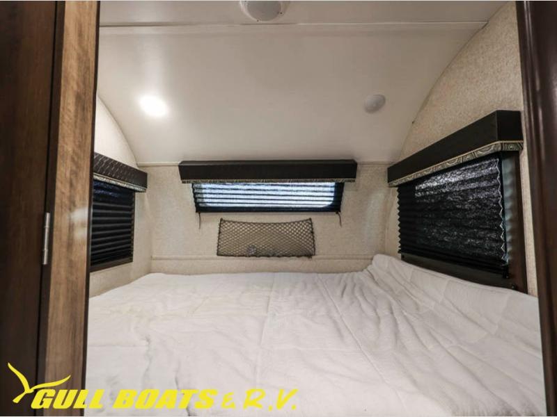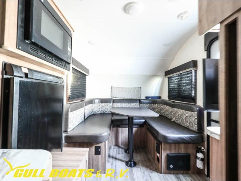 Get ready to head out to your campground of choice for a relaxing weekend away with this Jayco Hummingbird 17FD travel trailer. You will find plenty of seating for meals around the large front u-dinette, and at night you can use this area for additional sleeping space. Also in the rear there is a comfortable queen bed with bedspread and pillows. The slide out along the roadside helps to maximize the floor space plus here you will find the kitchen amenities. The power awning with LED lights not only provides shade during the day from the sun, but at night you can also grab a snack and enjoy the evening sunset under the awning.