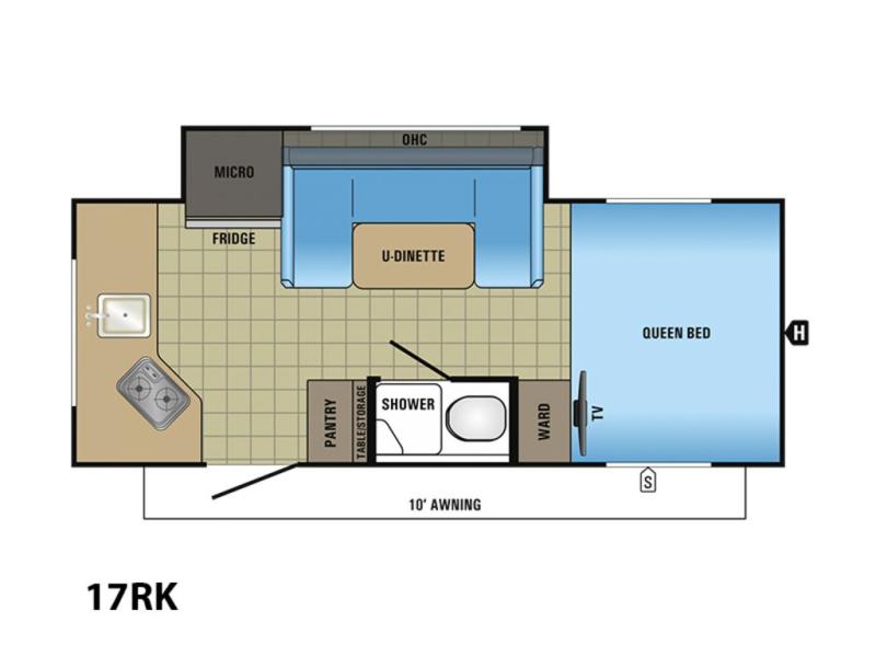 Come see just how fun and easy camping can be for any couple or family with young children. This Jayco Hummingbird 17RK has sleeping space for up to four people with the queen bed plus the u-dinette converts into additional sleeping space. The convenient wet bath is sure to come in handy - now you won't have to trek to the campground bathroom. You will love all of the storage throughout this model from the overhead dinette cabinet, pantry, and wardrobe, plus outdoors there is an exterior storage area and more!