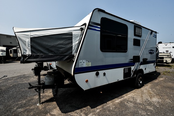Load up your family of seven and this Jayco Jay Feather 7 expandable 16XRB and set out to the campground of your choice! This model is lightweight and can easily be towed behind your minivan. Once you reach your destination then set up the front and rear tent beds, plus you will appreciate the water-repellent, scratch-resistant Jayco DuraTek vinyl tent material with zipper windows that includes a five year warranty. After playing outside during the day, come in and relax at the sofa and enjoy your meals at the dinette. Oh, and the handy rear bathroom features everything you need to get ready for the day such as a sink, shower, toilet, plus there is a skylight for more natural lighting.