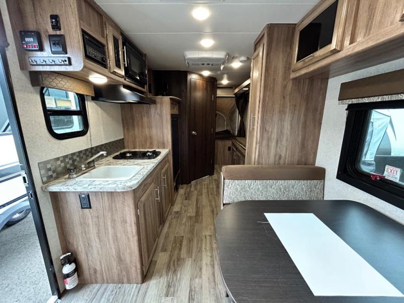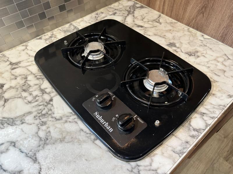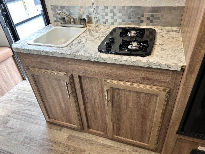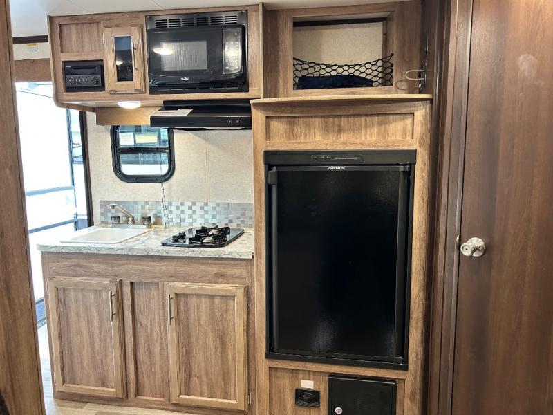 When you need time away from your busy schedule, and need more time to enjoy the simpler side of life, then come enjoy a weekend camping in this Jayco Jay Feather 7 expandable 17XFD. This model can easily sleep seven people with the front, rear, and side tent beds, plus at night you can convert the dinette into a sleeping spot for a weary camper. With the five year warranty on the water-repellent, scratch-resistant Jayco DuraTek vinyl material you can rest assured that you will not get wet inside while camping. Enjoy the spacious, open interior which also features a nice kitchen area with a refrigerator, microwave, and a two burner range.