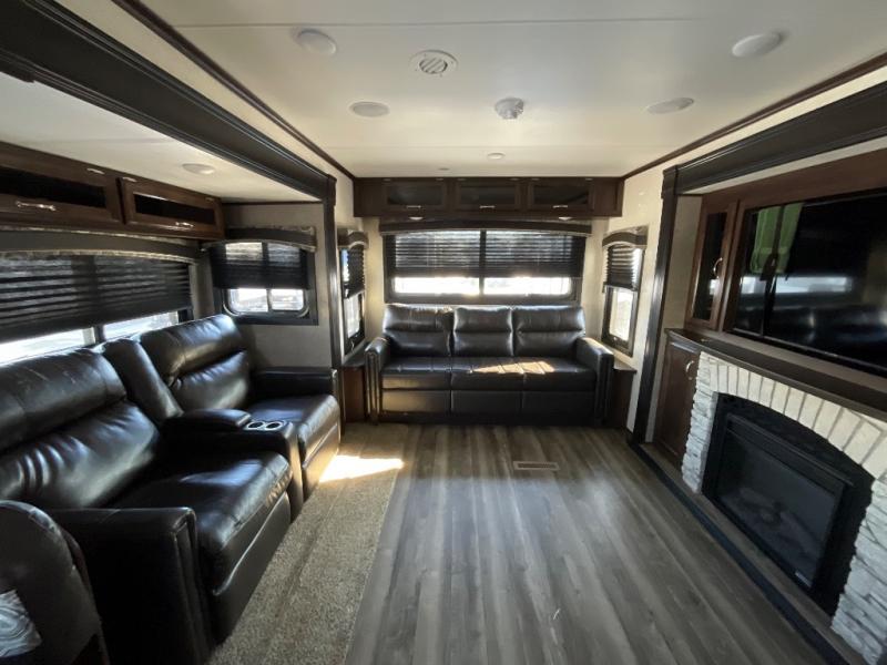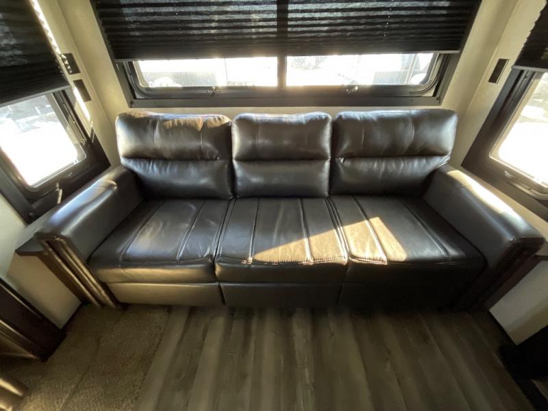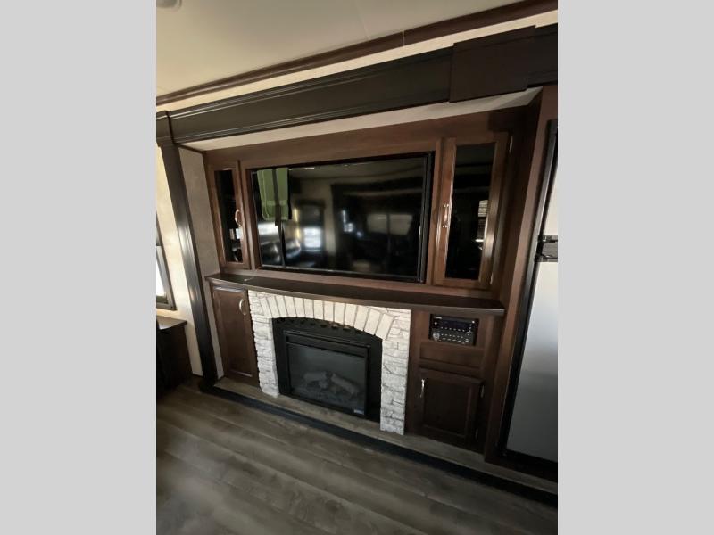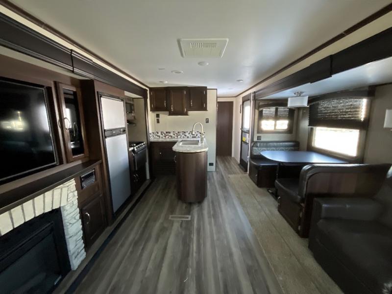 Can you picture yourself relaxing in the rear living area in this Jay Flight 34RSBS travel trailer? This model is perfect for a couple that enjoys plenty of space to invite other camper friends over or even the grandkids for a weekend away. The front master bedroom features a closet, and a second entry into the bathroom. The main living and kitchen area includes dual slide outs for more floor space, theater seats, and additional furniture that will provide extra sleeping space for the overnight guests. You will love watching the big game or a show while staying warm from the fireplace. Stop picturing yourself, and start camping in this Jay Flight!