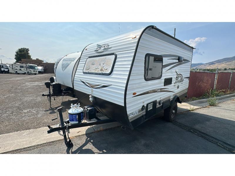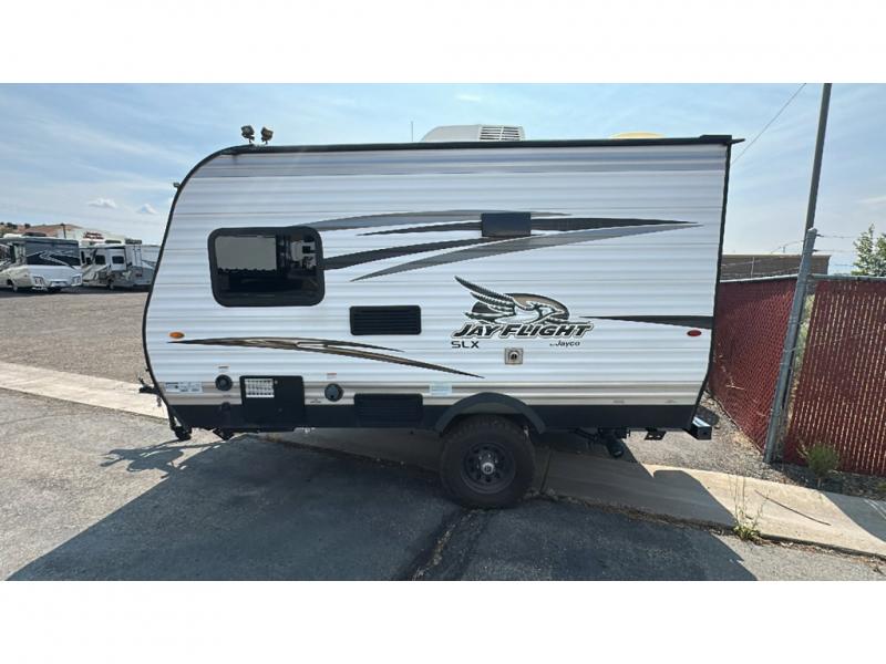 This Jay Flight SLX 145RB travel trailer by Jayco is ideal for a weekend getaway.