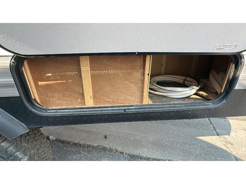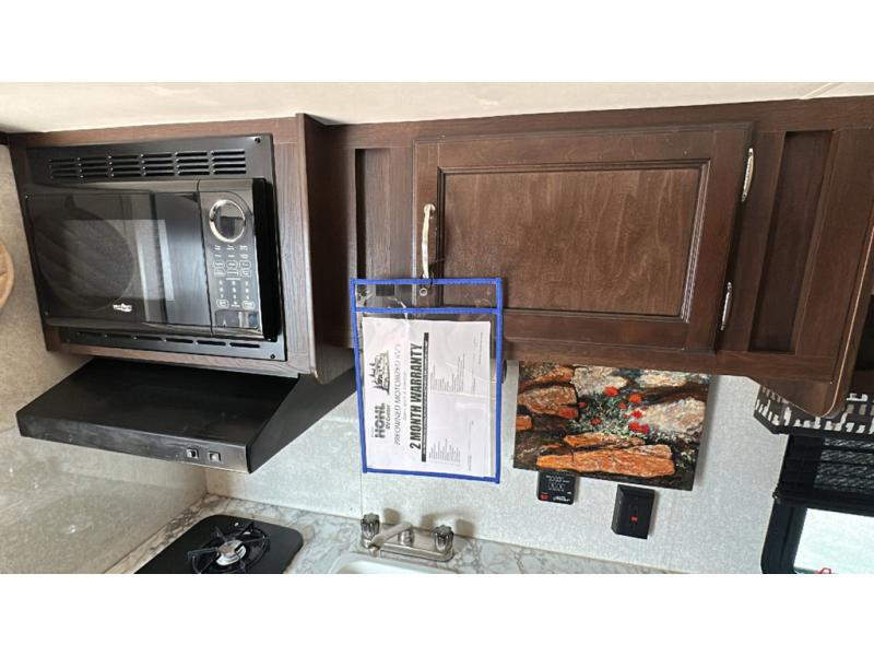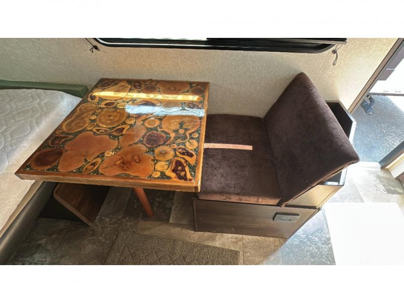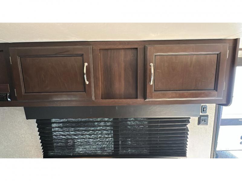 There is a front dinette and a sofa along the door side. You are sure to enjoy all of the overhead cabinets throughout this travel trailer.
