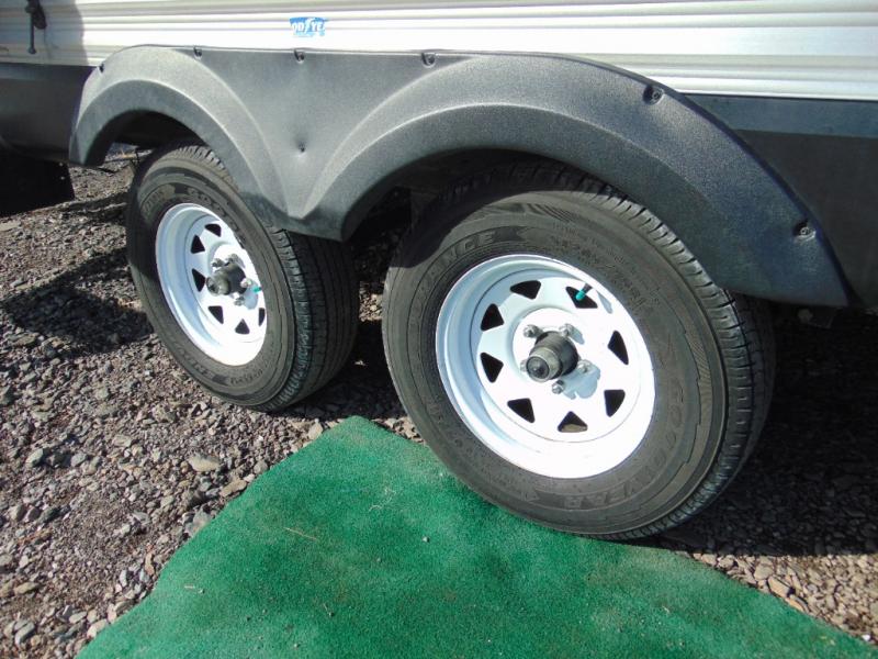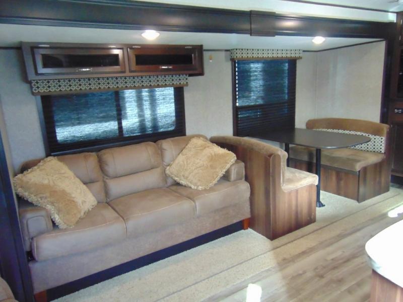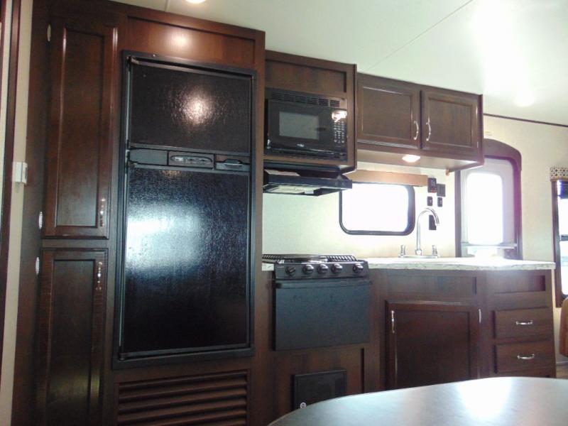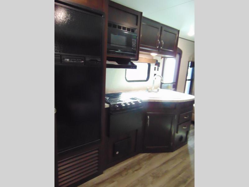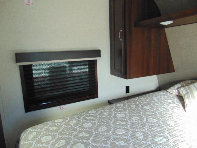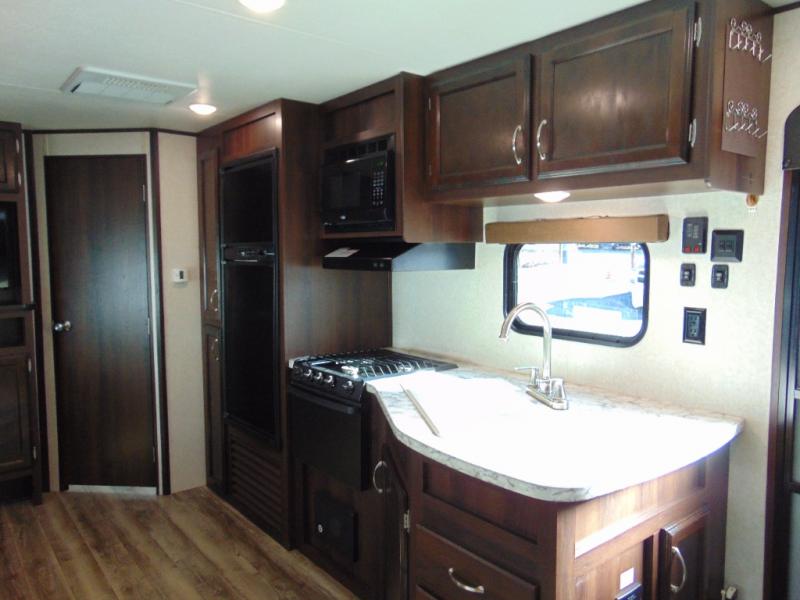 If you enjoy being in the great outdoors and prefer sleeping in comfort then this Jay Flight SLX 8 265RLS travel trailer might be the one. The private front bedroom offers a queen size Simmons mattress for the owners and a second entry into the trailer. You can relax on one of the two lounge chairs while your friends are on the additional furniture. If you decide to invite overnight guests, the J-steel jackknife sofa and booth dinette provide extra sleeping space. You will surely appreciate the convenience of the walk-through bathroom, and floor space of the single slide out. It's time to check out this model to find even more features you will love.