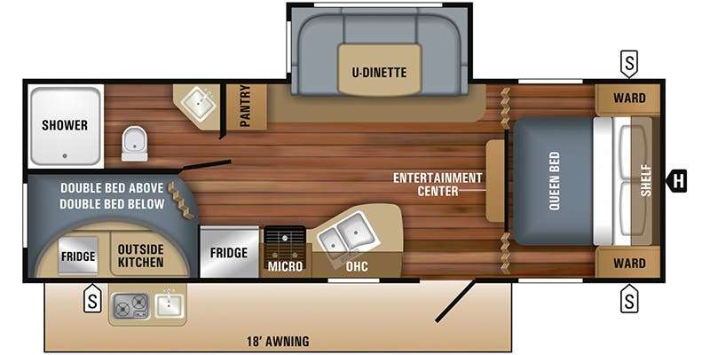 Adventure awaits in this 2018 Jayco Jay Flight Rocky Mountain Edition. Relax under the giant awning with LED lights. Equipped with 2 - 40-gallon freshwater tanks.