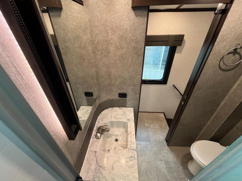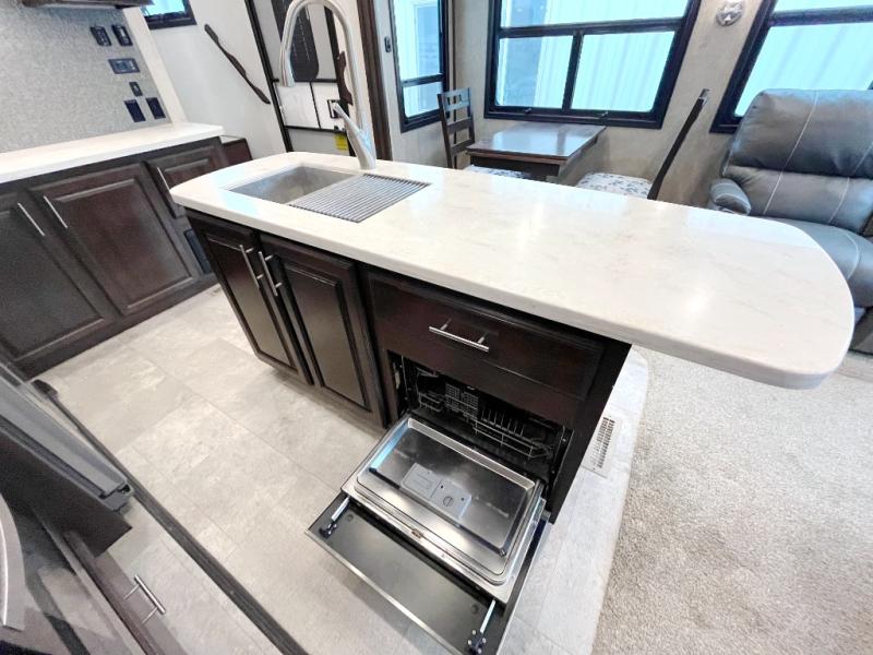 For any camping trip you will want a Jayco North Point fifth wheel. These models feature a Climate Shield which includes an enclosed, insulated, and heated underbelly, a high-BTU furnace, and Astrofoil in the roof and floors. Inside each model there is a Furrion Executive Chef gas cooktop, a stainless steel residential microwave, and USB charging centers in the living area, kitchen, and bedroom. The residential-grade wood-plank vinyl floor is easy to clean and will last for years to come. Now if that isn't enough to draw your attention, then you will like the mandatory North Point Luxury Package or the mandatory Customer Value Package which includes an arched interior ceiling, solid surface kitchen countertops, frameless G20 dark-tinted windows, slam-latch baggage doors and so much more!
