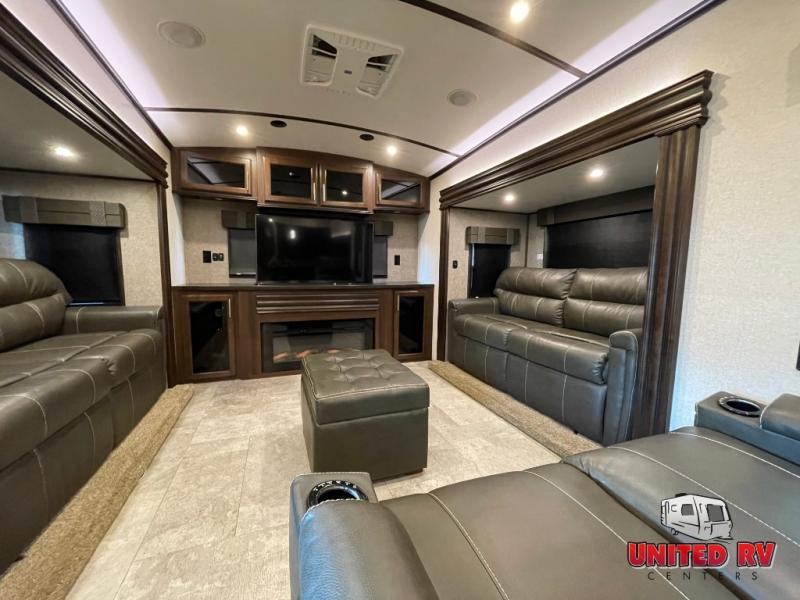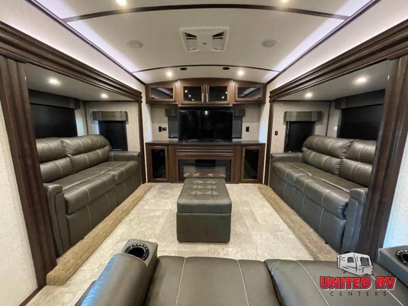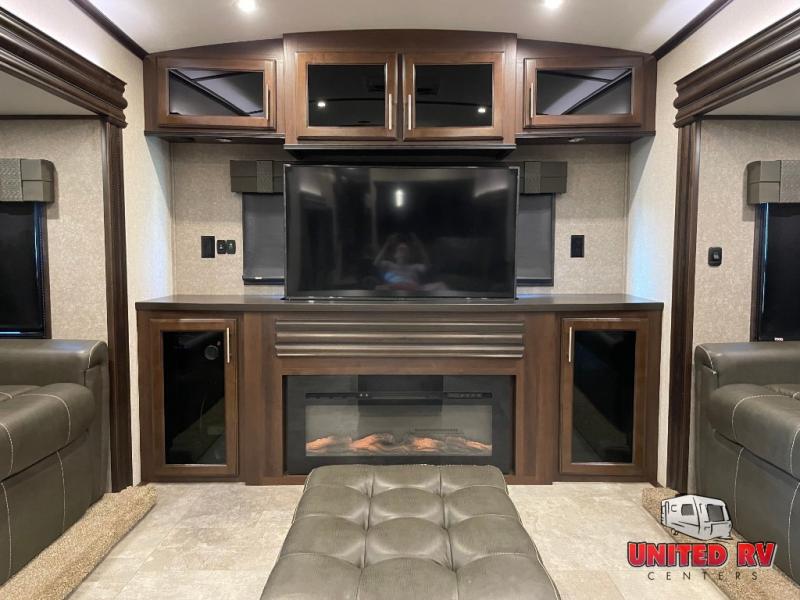 Enjoy camping in style and comfort in this 387RDFS North Point fifth wheel by Jayco. This model features five slide outs with plenty of room for your whole family plus a few friends. In the rear living area there is an entertainment center along the rear wall plus there is a fireplace for those chilly evenings. In the kitchen meal prep is easy with the island, three burner range, microwave, and residential refrigerator. In the private front bedroom you can get a good night's rest on the queen bed or you can choose an optional king bed. Outside there is an 18' awning and an optional 13' awning, plus so much more!