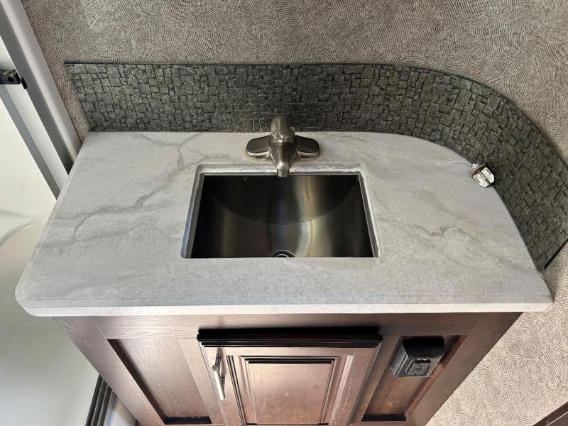 For any camping trip you will want a Jayco North Point fifth wheel. These models feature a Climate Shield which includes an enclosed, insulated, and heated underbelly, a high-BTU furnace, and Astrofoil in the roof and floors. Inside each model there is a Furrion Executive Chef gas cooktop, a stainless steel residential microwave, and USB charging centers in the living area, kitchen, and bedroom. The residential-grade wood-plank vinyl floor is easy to clean and will last for years to come. Now if that isn't enough to draw your attention, then you will like the mandatory North Point Luxury Package or the mandatory Customer Value Package which includes an arched interior ceiling, solid surface kitchen countertops, frameless G20 dark-tinted windows, slam-latch baggage doors and so much more!