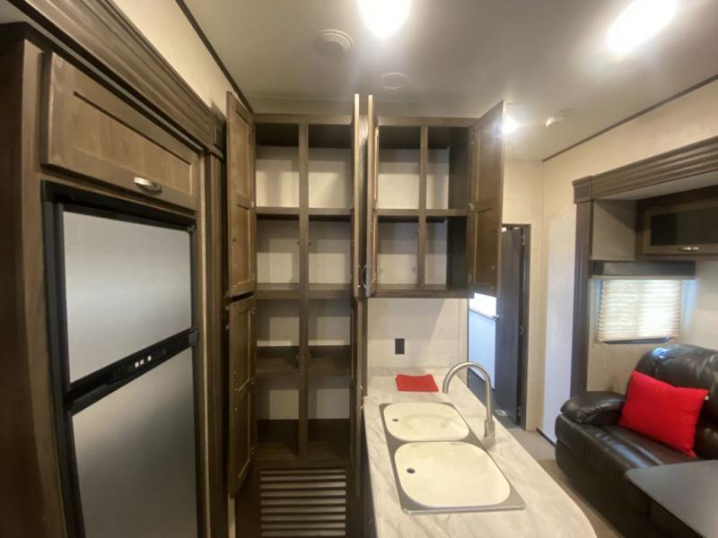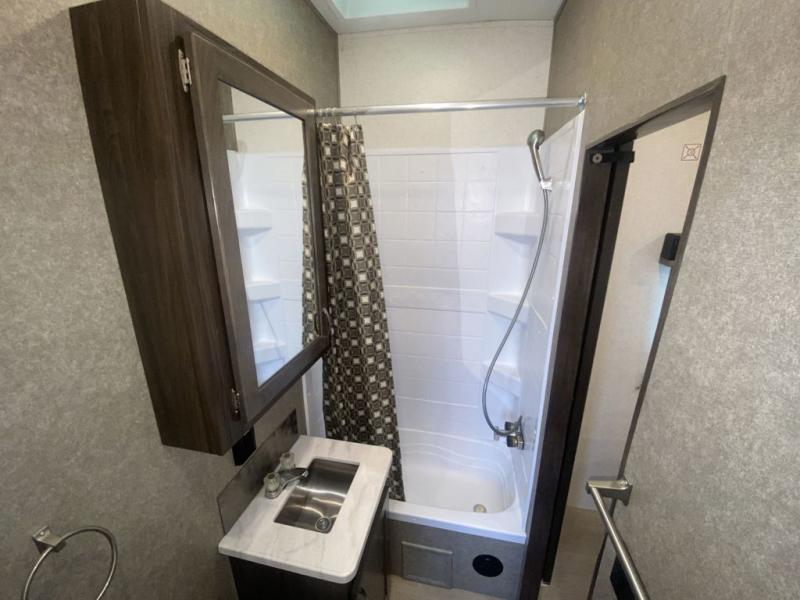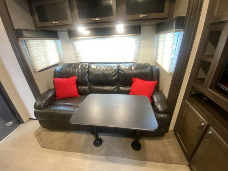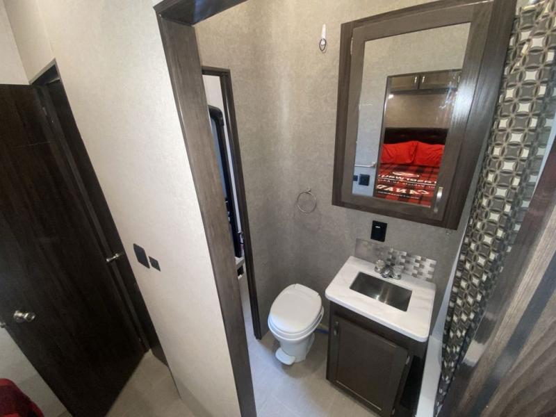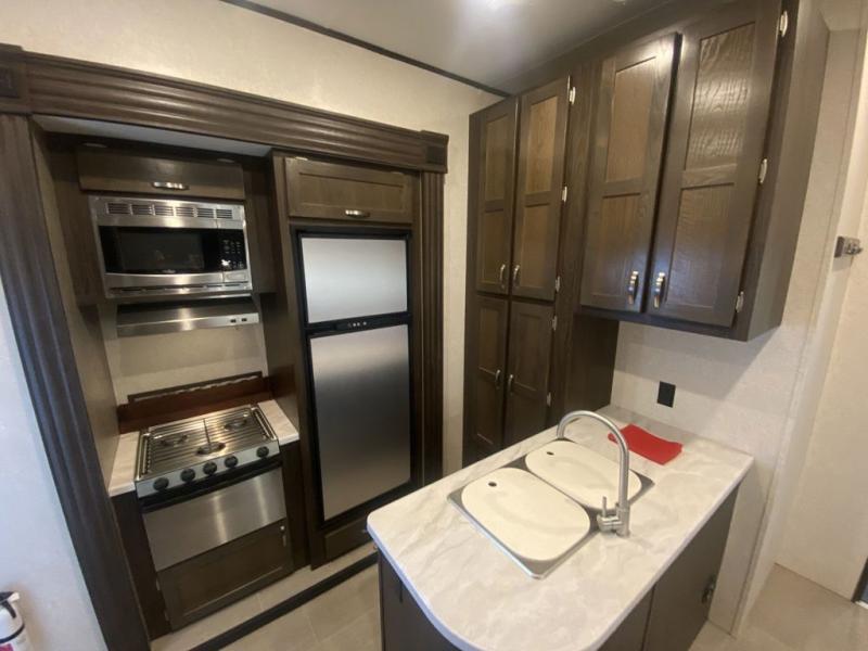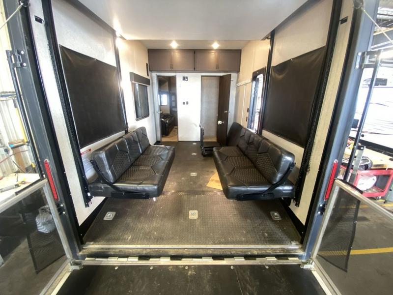 This Octane toy hauler contains everything you need to take your outdoor adventure to the next level because it not only provides a 12' 6" separate garage to accommodate your storage needs, but with two slides, it also provides ample living space to sleep eight people comfortably during every trip. The full and half bath are an extra blessing during those busy morning preparations, and the front master suite has its own personal entrance into the full bathroom.
