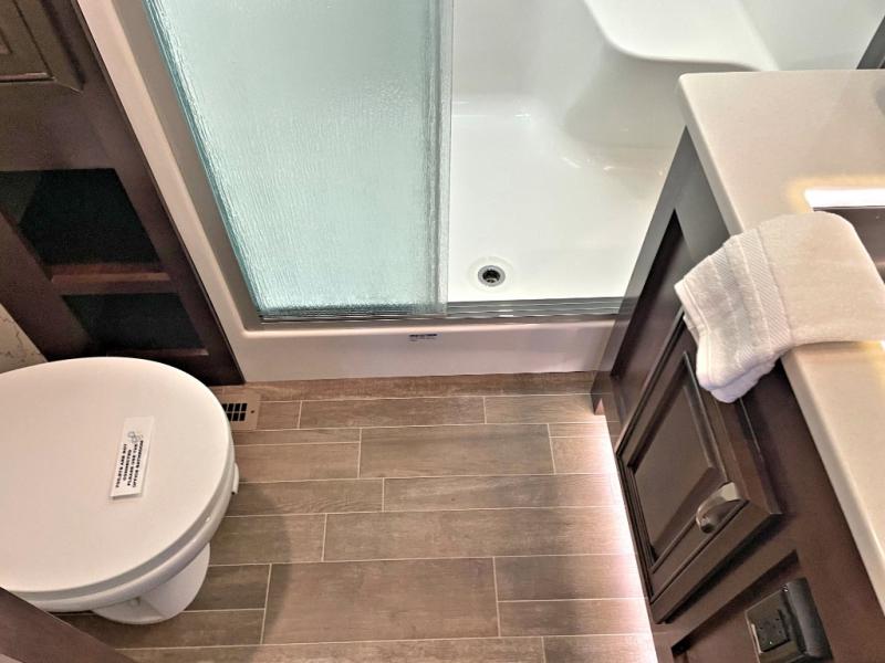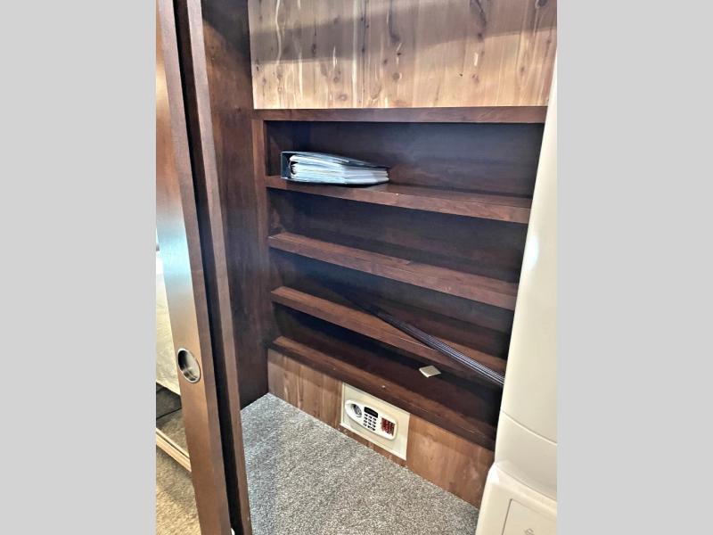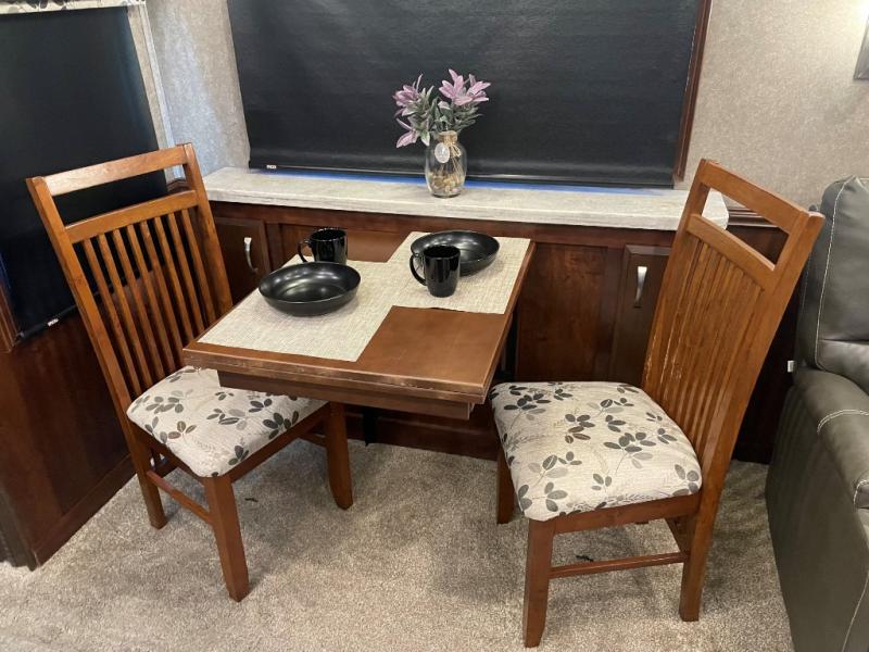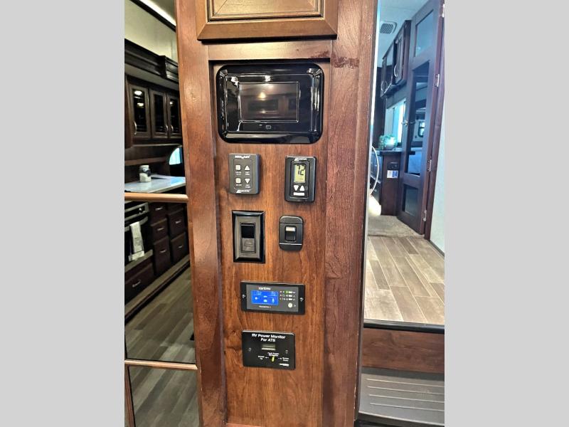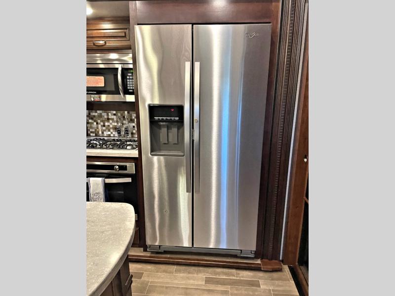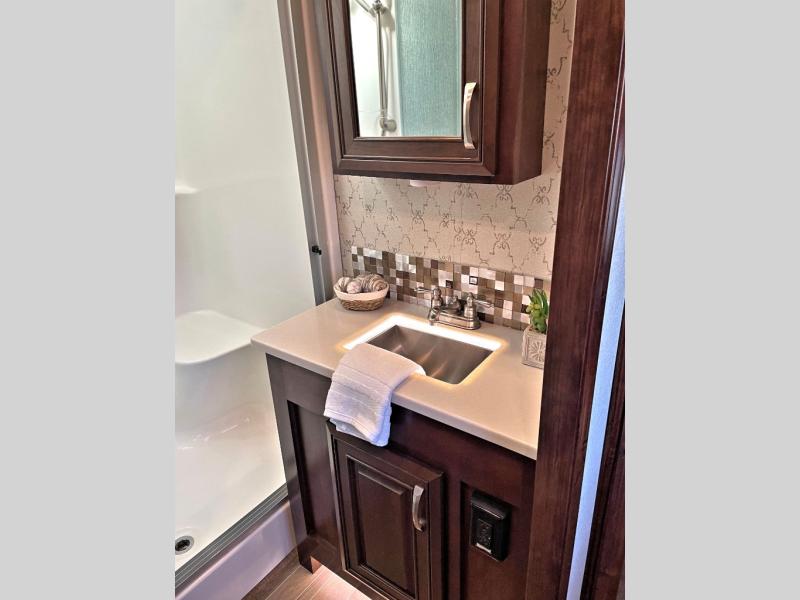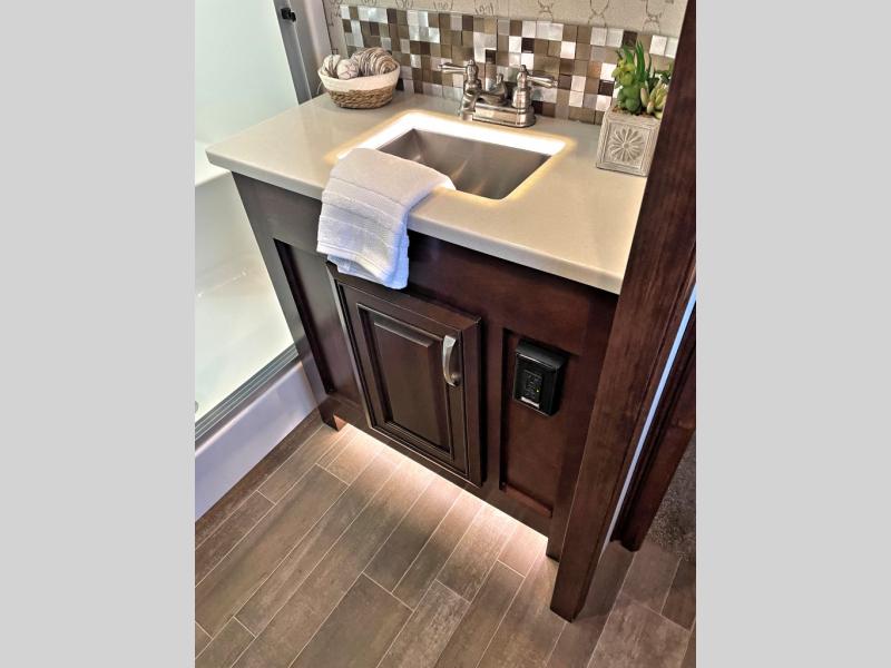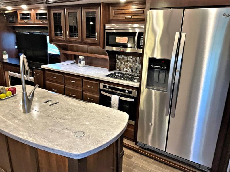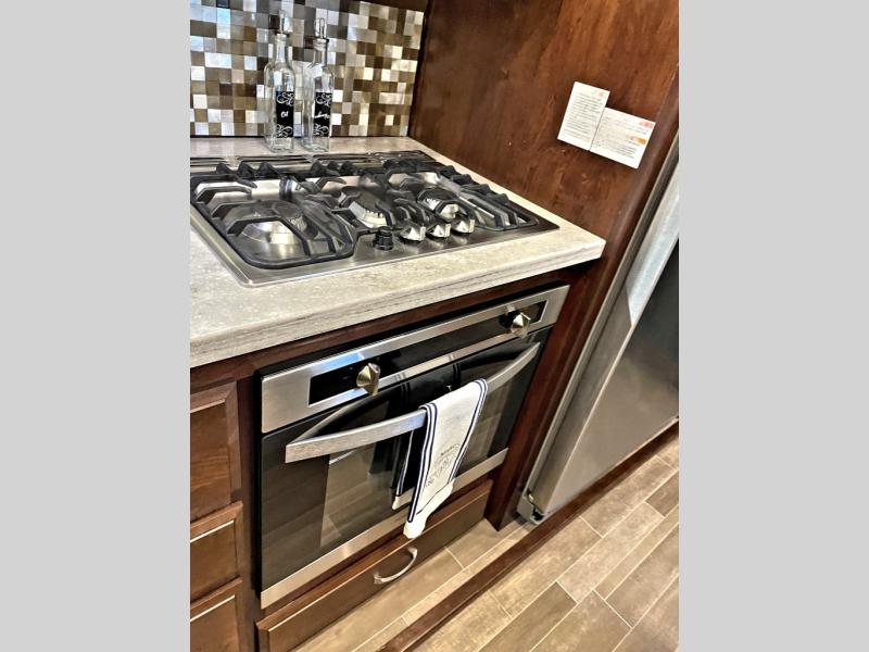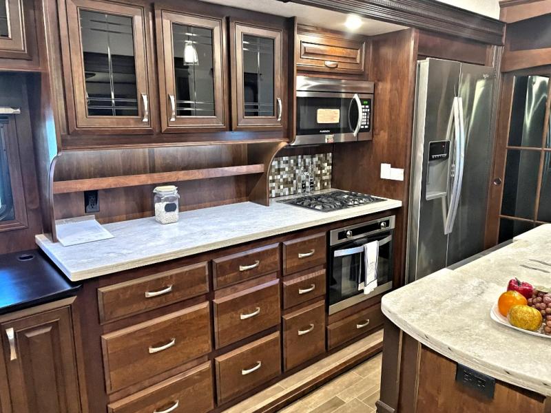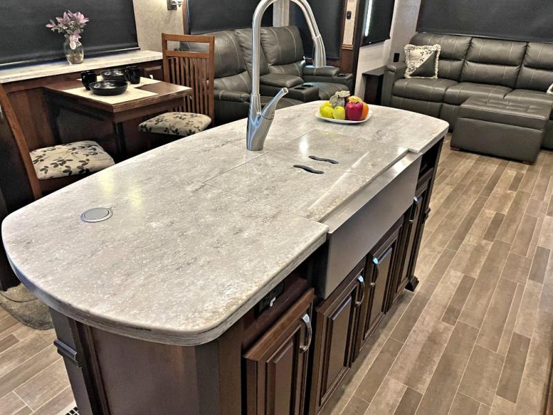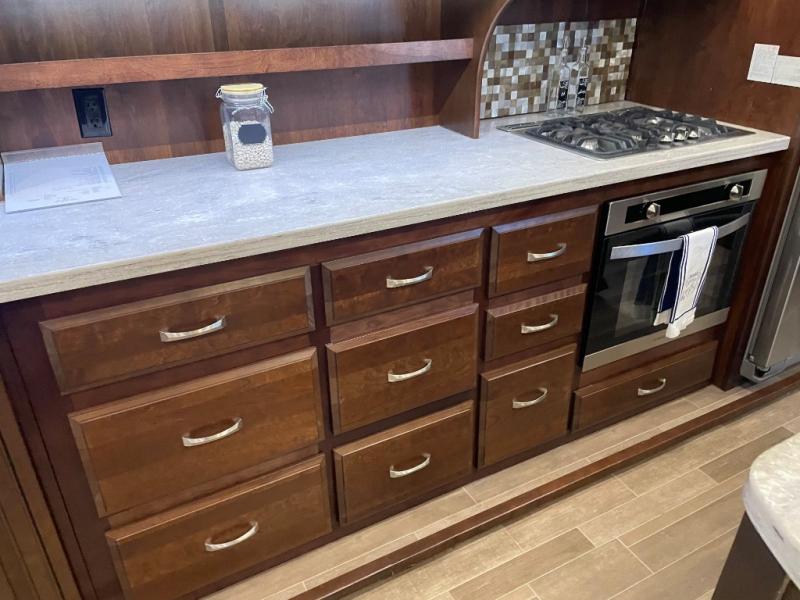 Each Jayco Pinnacle is equipped with the exclusive 5-Star Handling Package, an aerodynamic front and rear cap, an enclosed, insulated, and heated underbelly for four seasons of traveling, and a seamless composite roof covering making traveling down the road smooth and comfortable as well as each stay. The luxury fifth wheel also provides an arched interior ceiling, solid-surface kitchen countertops, an indoor/outdoor central vacuum system, an electric, thermostat-controlled fireplace, a whole coach water purification system, and so much more. Come choose your favorite luxury fifth wheel today!