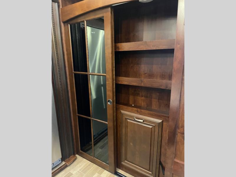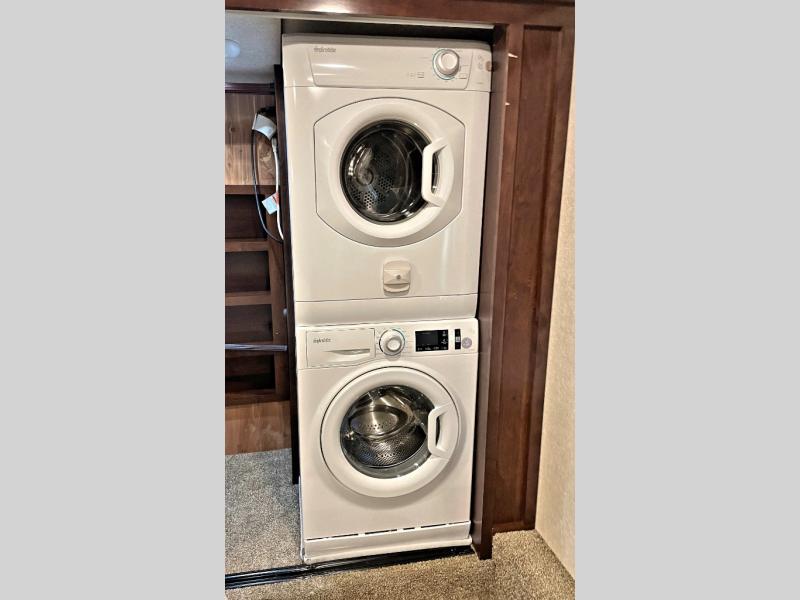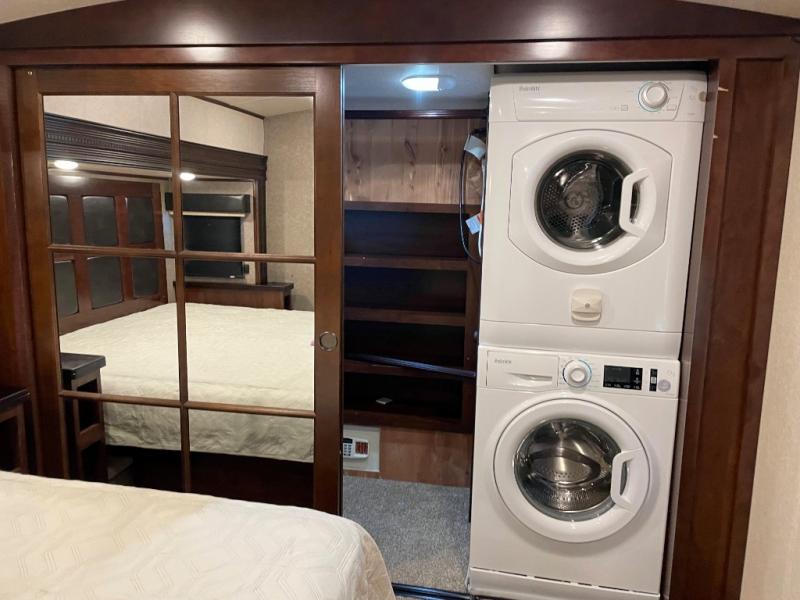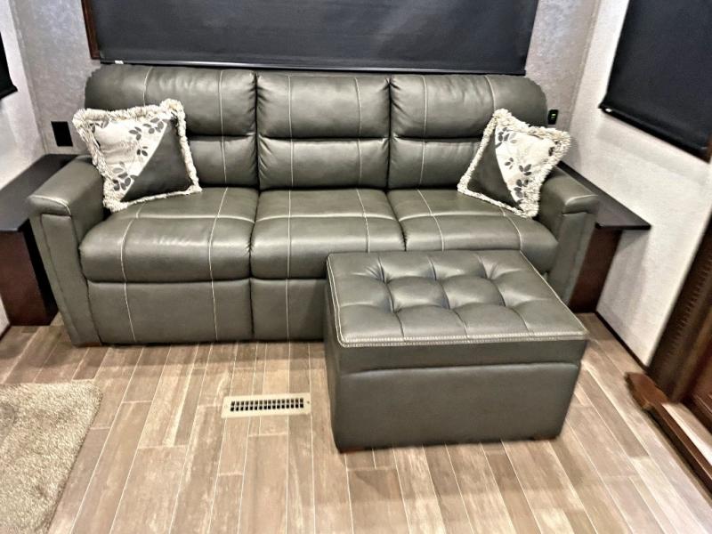 If you are a couple or family of four this Pinnacle fifth wheel is perfect for you. Model 36KPTS provides a front master bedroom with the Jayco luxury sleep system with a Simmons residential foam-top mattress, a 32" LED HDTV above a chest, and a walk-in closet. You can even choose to add a stackable washer/dryer if you like. The bathroom allows you to get cleaned up for the day with an oversized residential shower. Imagine resting in a large living and kitchen area thanks to the dual slide outs, and making meals for the family with the kitchen appliances. You will find plenty of storage throughout especially inside the pantry with sliding doors. Staying warm isn't a problem with the fireplace while visiting with friends or sleeping on the tri-fold hide-a-bed. There is so much more to enjoy, choose this Pinnacle for making memories while traveling the countryside.