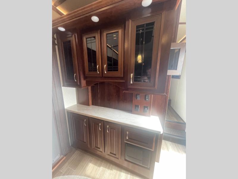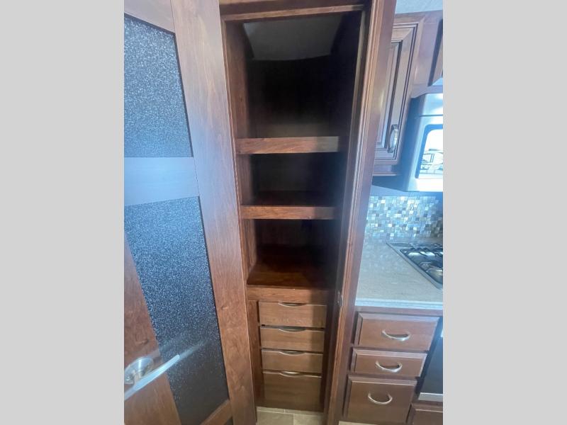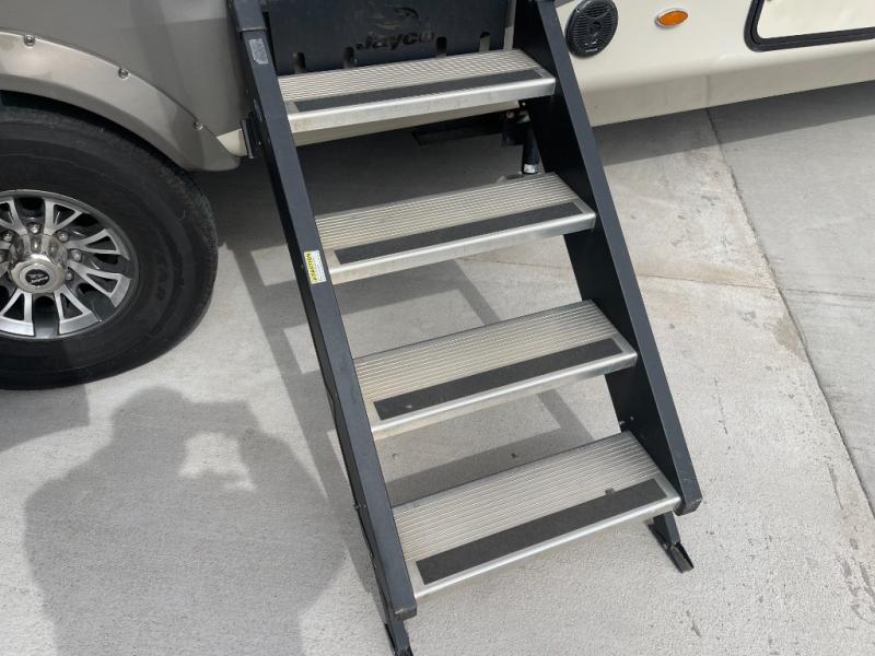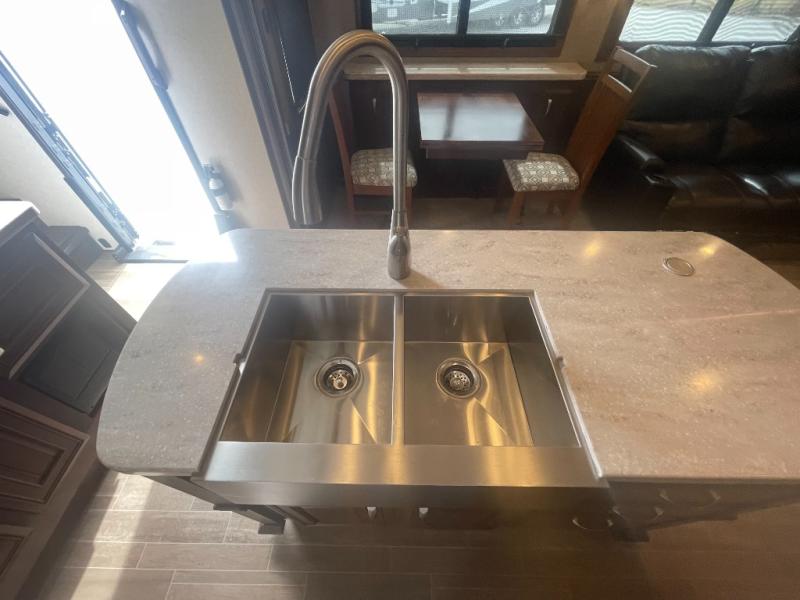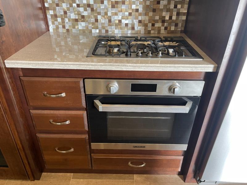 Each Jayco Pinnacle is equipped with the exclusive 5-Star Handling Package, an aerodynamic front and rear cap, an enclosed, insulated, and heated underbelly for four seasons of traveling, and a seamless composite roof covering making traveling down the road smooth and comfortable as well as each stay. The luxury fifth wheel also provides an arched interior ceiling, solid-surface kitchen countertops, an indoor/outdoor central vacuum system, an electric, thermostat-controlled fireplace, a whole coach water purification system, and so much more. Come choose your favorite luxury fifth wheel today!