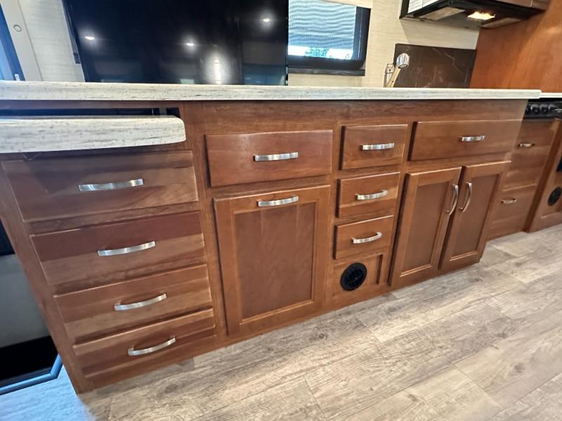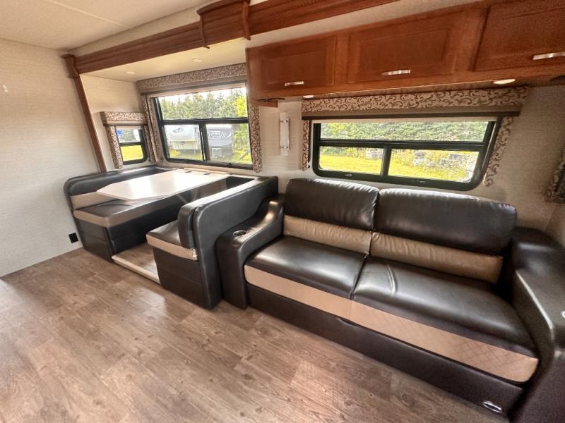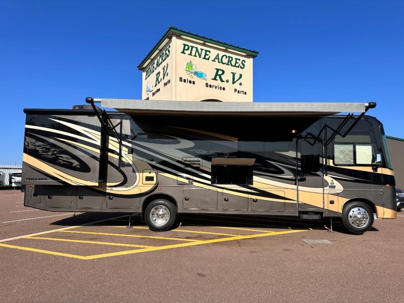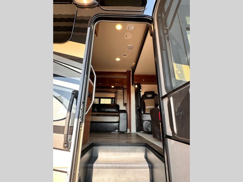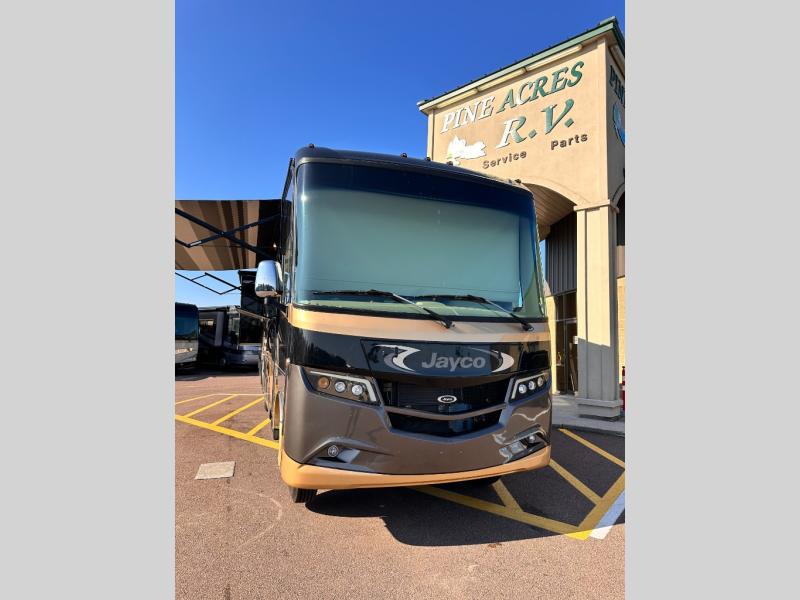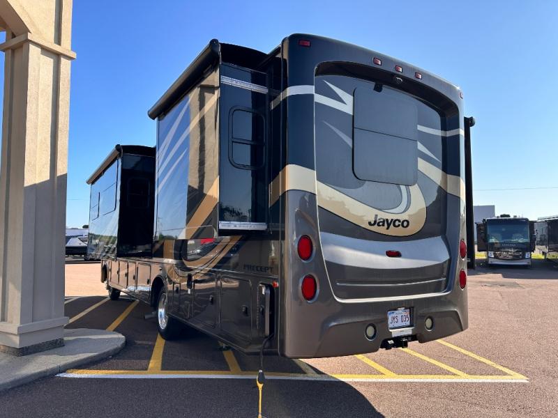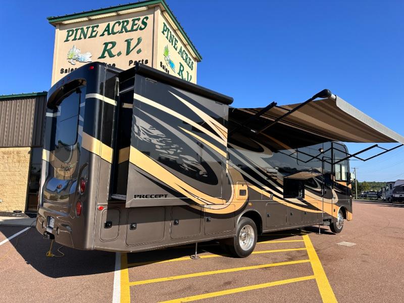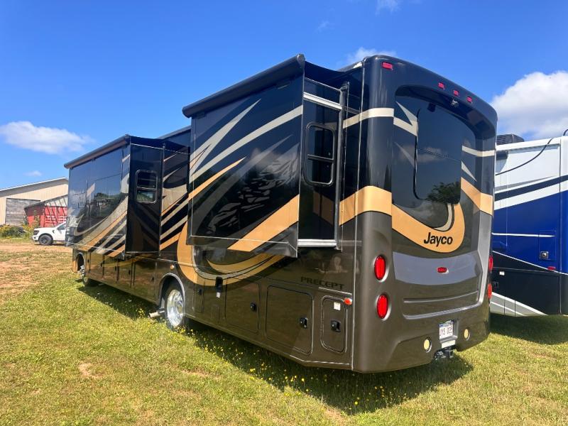 The Precept class A motorhome provides exclusive technology and premium ride and handling features for a luxurious home away from home experience on the open road. The JRide Plus feature allows for precise handling and stability for a safe ride anywhere you go. The automatic hydraulic leveling jacks, plus backup and sideview cameras allow for easy set up at your favorite destination. You will also appreciate the Jayco-exclusive Garmin infotainment system powered by Fusion, the Onan Marquis Gold Genset 5,500-watt generator with auto-gen start, and the water filtration system to name a few other standard features. You sure can't go wrong with any Precept model by Jayco that you find to fit your family's size and lifestyle, it's time to choose now!