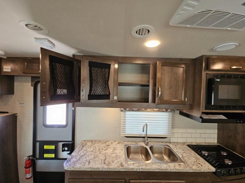 With any Jayco Redhawk class C gas motorhome you will get reliability and value on the open road. From the molded, seamless fiberglass front cap protecting you from the wind and rain, and the JRide package for the ultimate driving experience, to the rear backup camera that feeds directly to your in-cab monitor to help you reverse with more visibility, you will find satisfaction for years to come. There is interior storage throughout including under the queen bed, and an exterior pass-through compartment with a light to keep all your gear organized and ready for each trip. Come see why you should own a Jayco Redhawk motorhome!