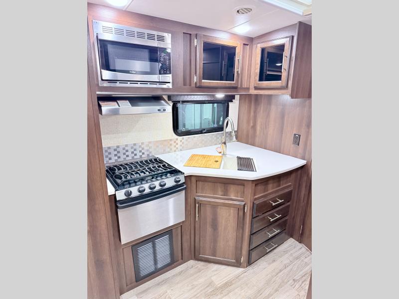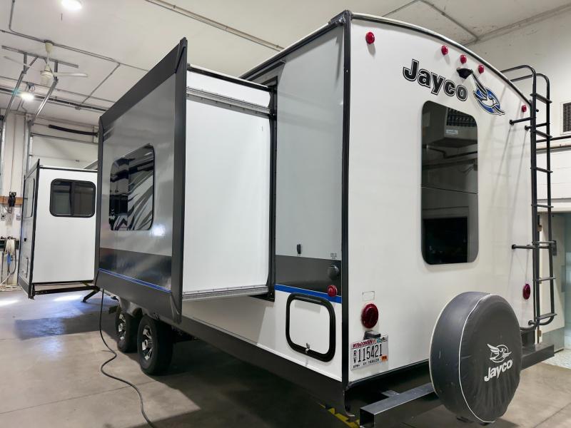 Jayco has made certain that you will stand out from the crowd while traveling in the White Hawk by adding their Magnum Truss Roof System which can withstand up to 4,500 pounds, fifty percent more than the competition. The American-made Goodyear tires with self-adjusting electric brakes are the perfect base to the sleek and aerodynamic exterior. On top of all of that, the entire trailer is backed by the Jayco 2-year limited warranty so that you can travel with confidence during every adventure you take.