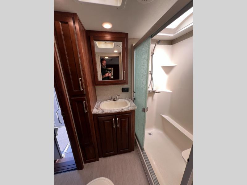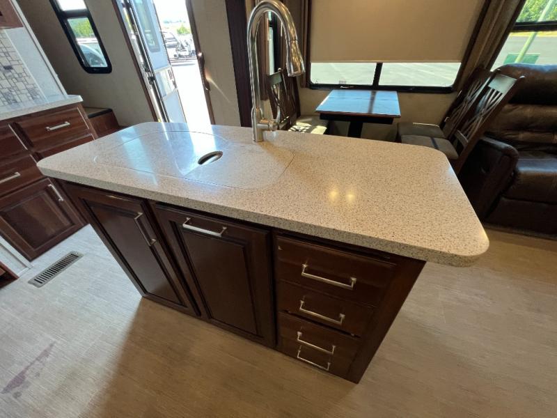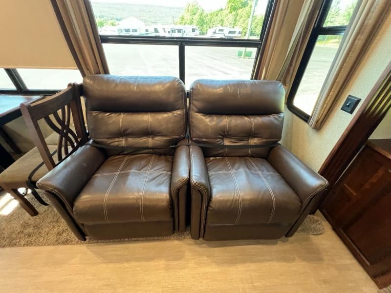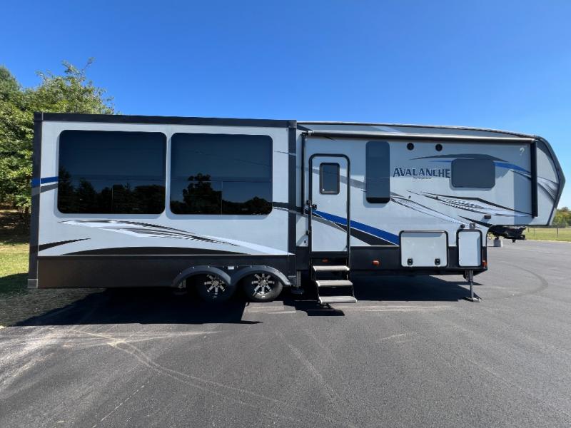 This Keystone Avalanche 300RE fifth wheel will have you imagining all the places you will travel. The rear entertainment center, the 50" LED TV with a fireplace below, and comfortable seating in chairs or on a sofa might have you staying inside every night. The full kitchen amenities will allow you to cook just like at home but with a beautiful view outside through the windows. You can go hiking, biking, or walking around all day then return to your own bedding and full master bathroom which includes a shower with a seat. You can even choose to add a washer and dryer if you like to take long trips or decide to become a full-time RVer. Come see what else makes this the perfect fifth wheel!