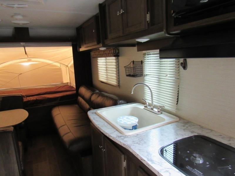 If you are just starting out in the RV world or you prefer an expandable for the ease of storing when you are not camping, this Keystone Bullet Crossfire 1650EX is perfect for you. Just imagine the fun you will have with the family, plus you get to sleep above ground. You can heat up leftovers in the microwave, or make dinner on the cooktop, plus there is a double door refrigerator. There is storage inside and outside. It's time to start living the RV lifestyle.