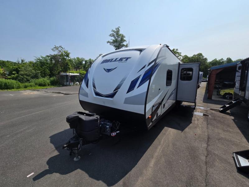 Get ready to embark on a camping trip of a lifetime with the Keystone Bullet travel trailers. These models are easy to tow behind most crossovers, cars, and trucks. The exterior is sleek and smooth and features aluminum framed front, rear, and side walls, a Darco moisture barrier, plus a one piece TPO roof. There is also a 1/4" ABS enclosed underbelly. Inside each model you will find residential style furniture, night shades in the living area, and LED lights. In the bedroom there is an upgraded foam mattress, mirrored wardrobes, under bed storage, plus full blackout window treatments. You will also enjoy the following packages: Exterior Camping Package, Interior Camping Package, and the Thermal Package.