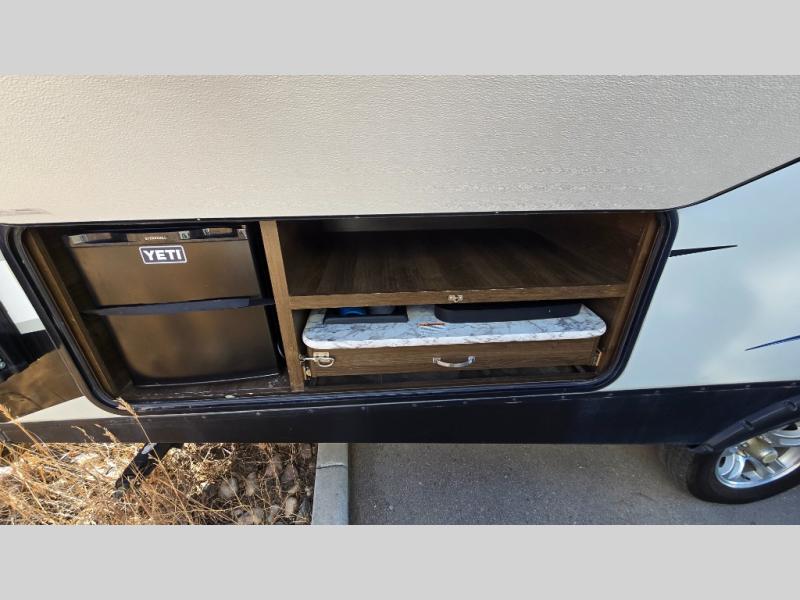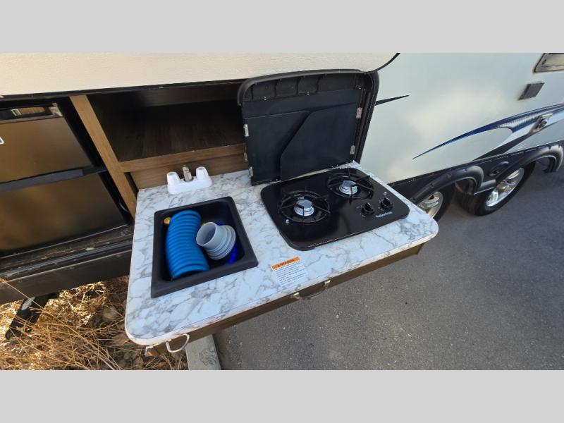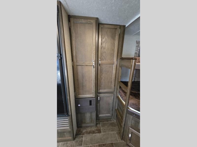 Come see just how fun and easy camping can be with this Bullet 277BHS travel trailer! You will find plenty of space inside thanks to the single slide out along the roadside. The front bedroom features a walk-around queen bed plus there are sliding doors on either side of the entertainment center. In the rear more sleeping space can be found at the double over double bed plus there is a ladder for easy access to the top bunk. The chef in the family can now enjoy more time outside while prepping meals at the outdoor kitchen and more!