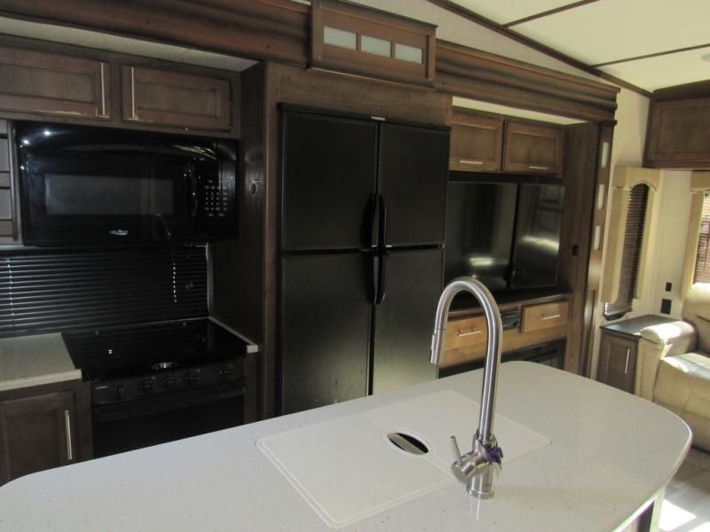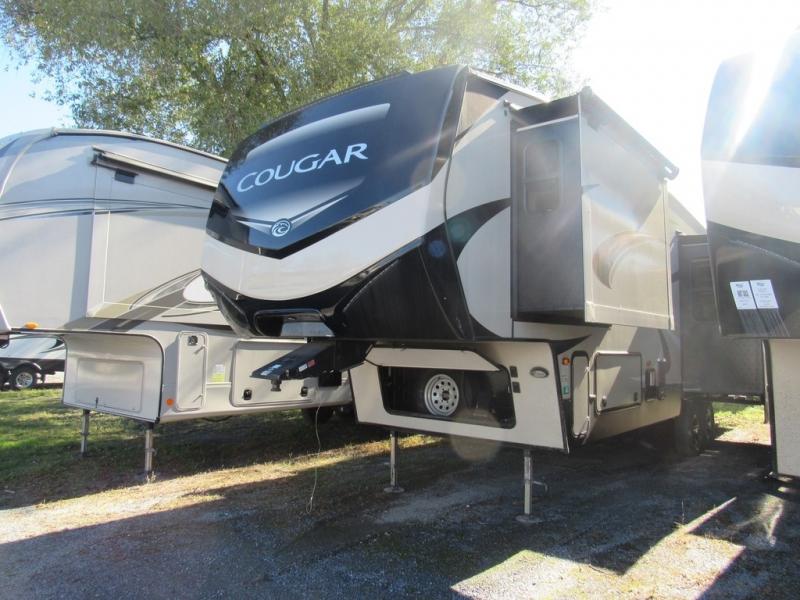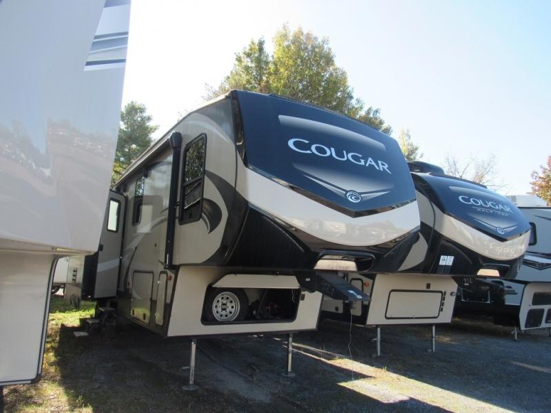 With any Keystone Cougar you will enjoy the Max Turn technology in the front cap when driving around town and parking the fifth wheel. You will be able to camp in any weather with the forced-air heated and enclosed underbelly with enclosed dump valves and astorfoil insulated slide floors. If you need to stay cool or warm, these units have you covered. You can even take your bikes and additional totes along with the 225 lb. capacity folding exterior bike/storage rack. Inside, you are sure to love the LG solid surface countertop in the galley, the two TVs, the Cougar vintage maple glazed hardwood, and much more! Come get your favorite Cougar model and start making memories.