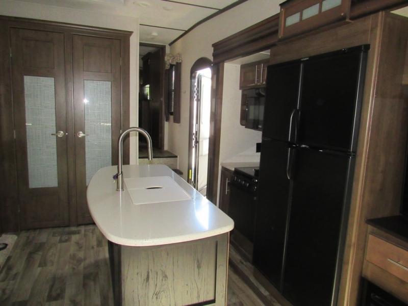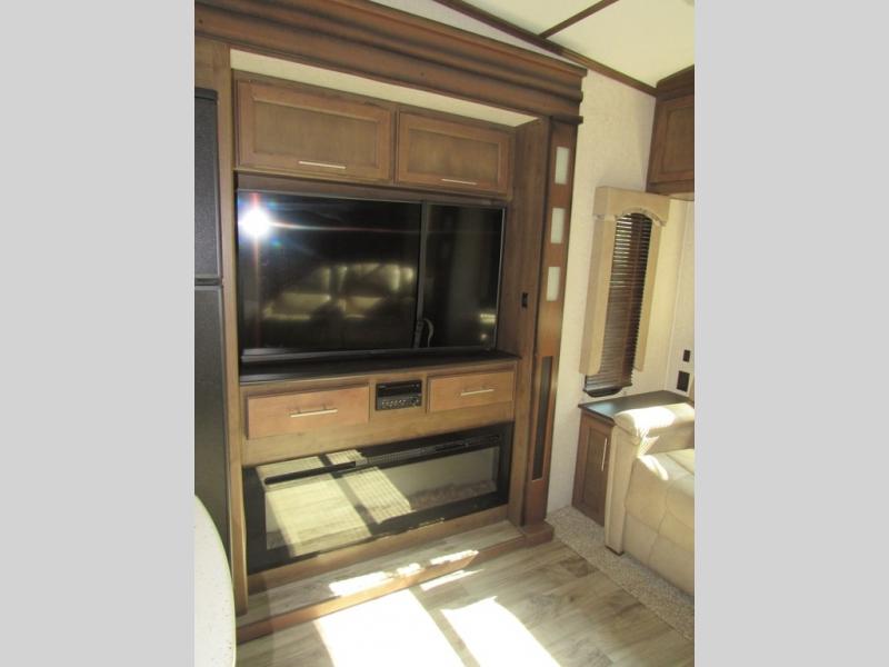 If you are set on relaxing inside but adventuring outside then this Cougar fifth wheel 310RLS has you covered. From the tri-fold sleeper sofa, theater seating, and dinette there is plenty of room for relaxation, eating, and visiting. The dual opposing slide outs in the combined living and kitchen area plus the single slide in the bedroom provide more interior floor space to move about. The cook will appreciate the kitchen island and large pantry, and the warmth of the fireplace near by. Outside, the awning offers shade from the sun, and the unobstructed pass-through storage makes loading and unloading your larger outdoor gear a breeze. Take a look, you will be pleased you did!