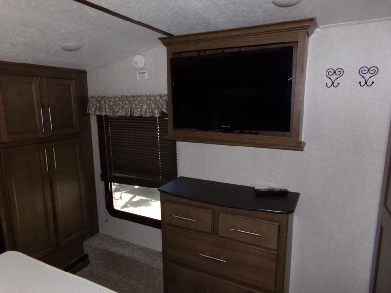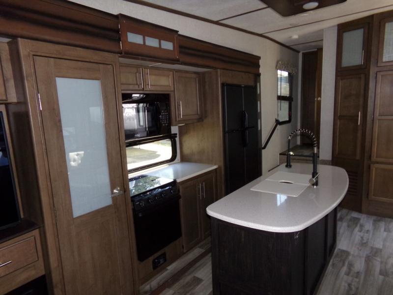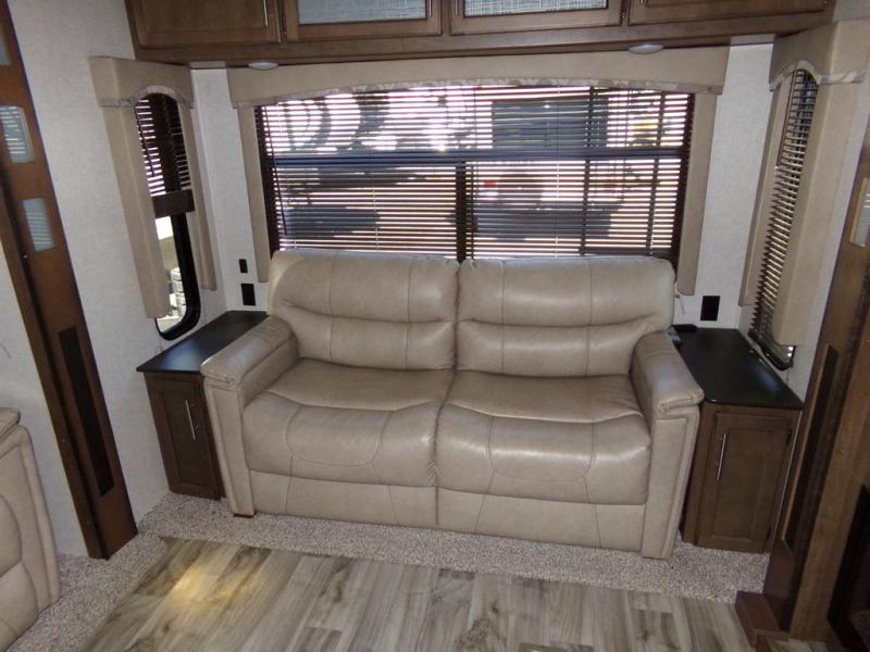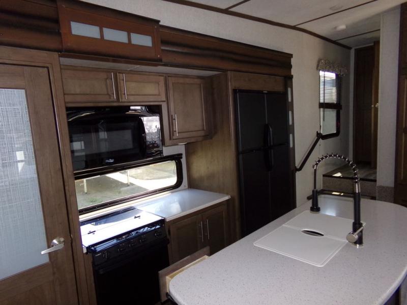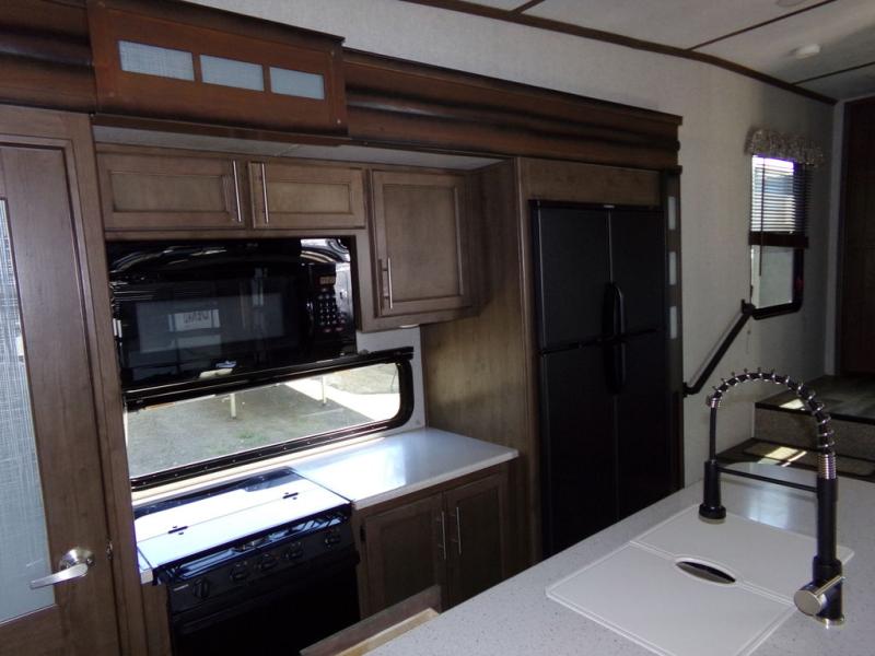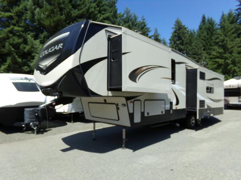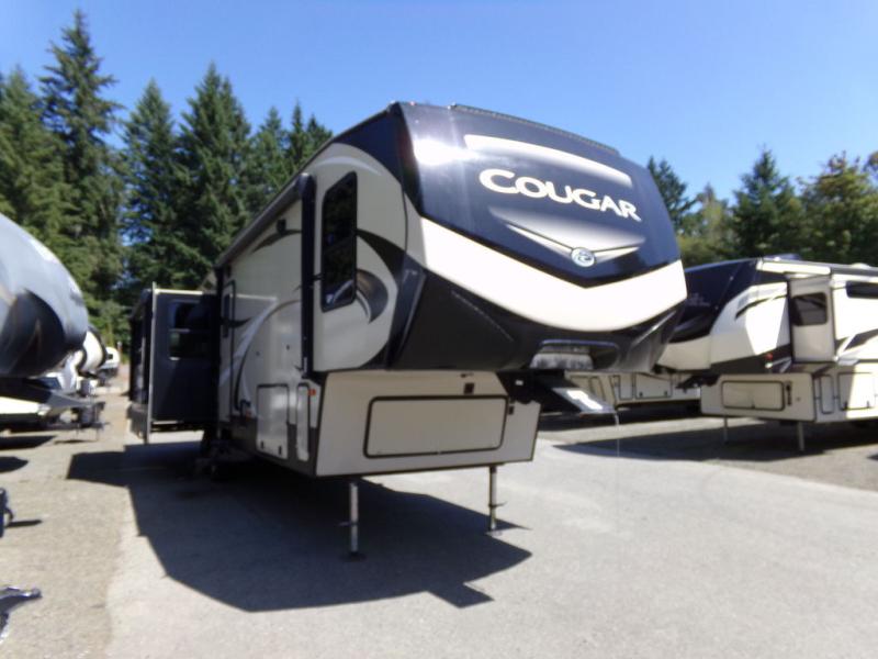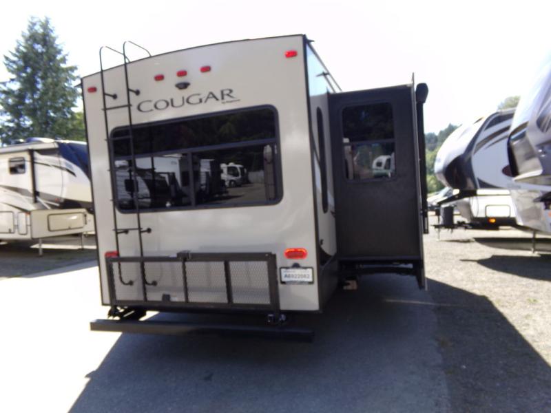 With any Keystone Cougar you will enjoy the Max Turn technology in the front cap when driving around town and parking the fifth wheel. You will be able to camp in any weather with the forced-air heated and enclosed underbelly with enclosed dump valves and astorfoil insulated slide floors. If you need to stay cool or warm, these units have you covered. You can even take your bikes and additional totes along with the 225 lb. capacity folding exterior bike/storage rack. Inside, you are sure to love the LG solid surface countertop in the galley, the two TVs, the Cougar vintage maple glazed hardwood, and much more! Come get your favorite Cougar model and start making memories.