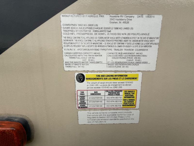 Used 2018 Keystone RV Cougar Half-Ton Series 26RBS Travel Trailer