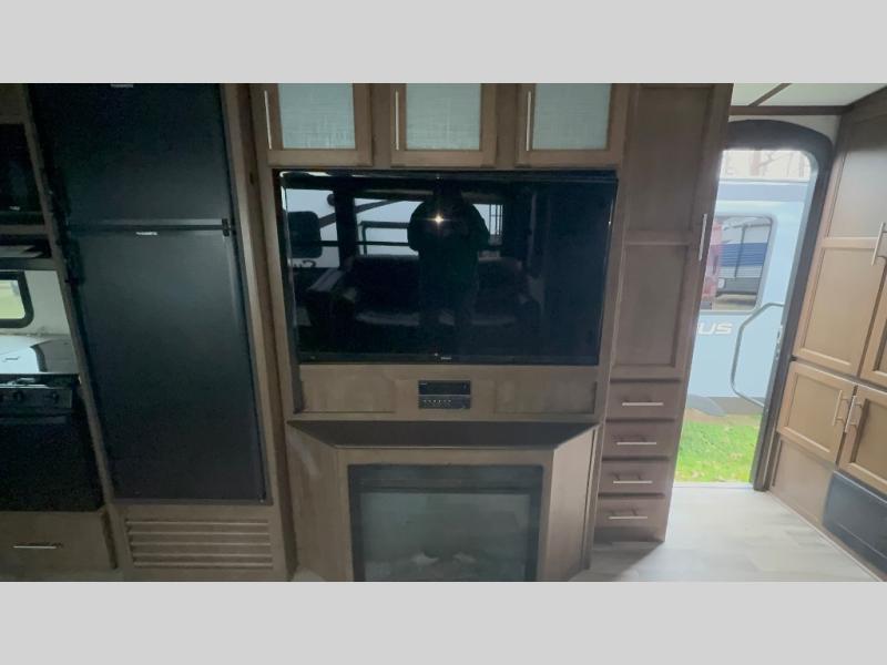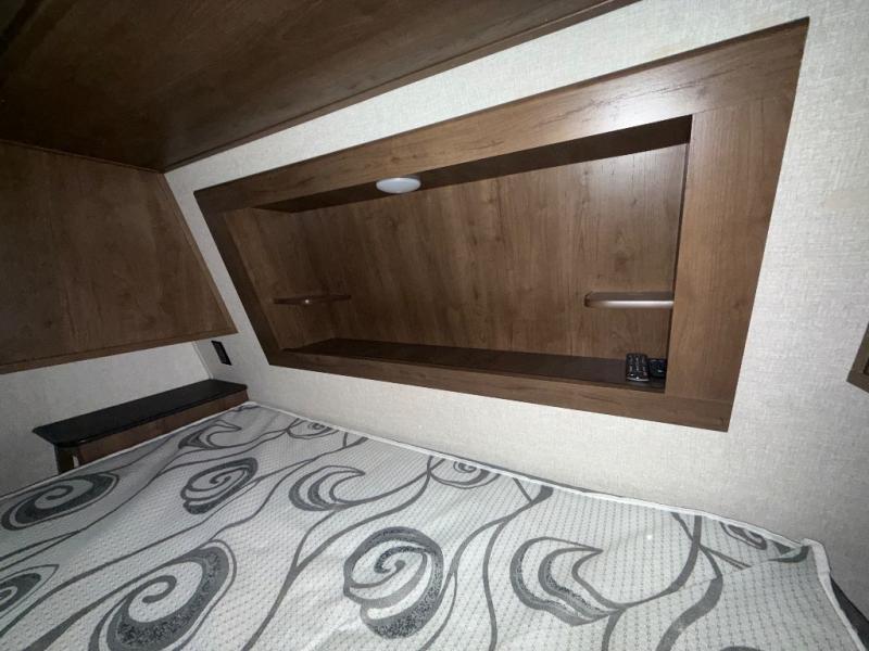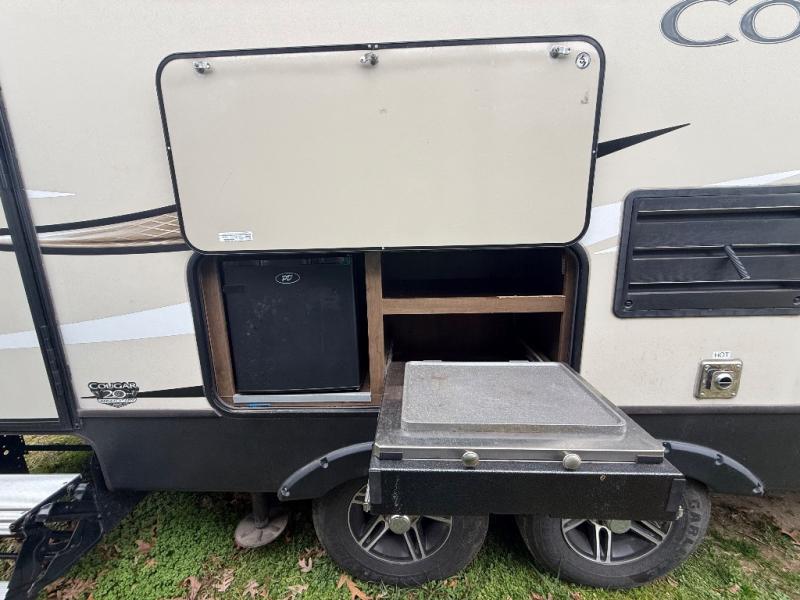 If you are a couple that likes to invite friends on your trips then this Cougar Half-Ton Series travel trailer 26RBS is ready for you! You will find the single slide out with a booth dinette and tri-fold sleeper sofa provides plenty of seating as well as extra sleeping space for overnight guests. You and your friends can enjoy the entertainment center and fireplace along the opposite side while talking about the day. The front private bedroom allows you to have your own space when needed, plus the second entry into the trailer comes in handy. Outside, you can make burgers on the capital grill and store drinks in the mini refrigerator when wanting to be outdoors where the action is. The Ground Control and power jack will make setting up easy, plus there is more to love.