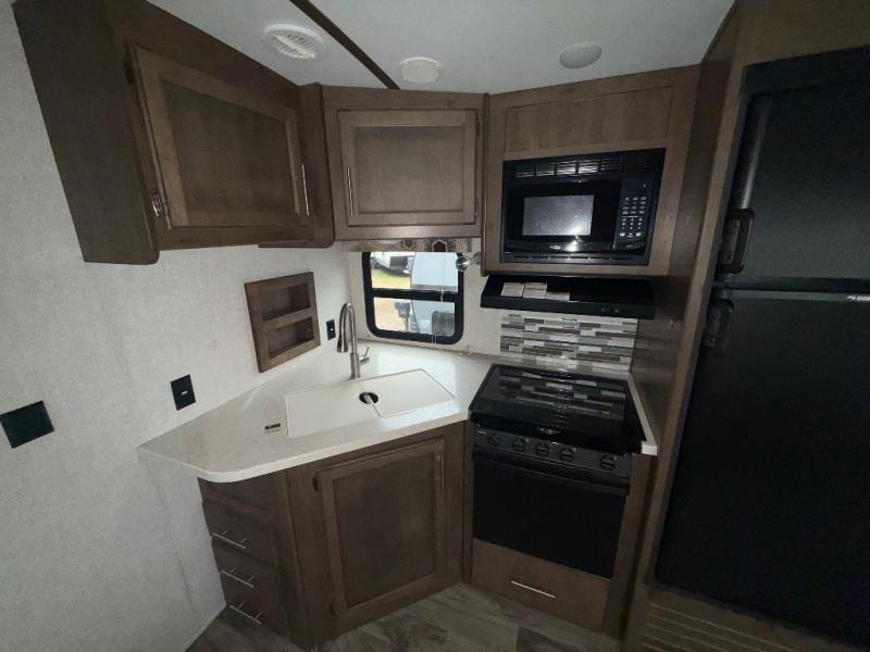 With any Keystone Cougar Half-Ton Series travel trailer you will be able to camp in any weather with the forced-air heated and enclosed underbelly with enclosed dump valves and astorfoil insulated slide floor. If you need to stay cool or warm, these trailers have you covered. You can even take your bikes and additional totes along with the 225 lb. capacity folding exterior bike/storage rack. Inside you are sure to enjoy the gourmet stainless steel under mount sink with the upgraded chef's faucet with sprayer when cleaning your fruits and vegetables or washing the dishes. The master bedroom offers a king bed in each model for more sleeping space for the owners. There are many more features you will want on your next travel trailer, come get your favorite Cougar Half-Ton Series model today.