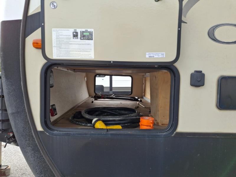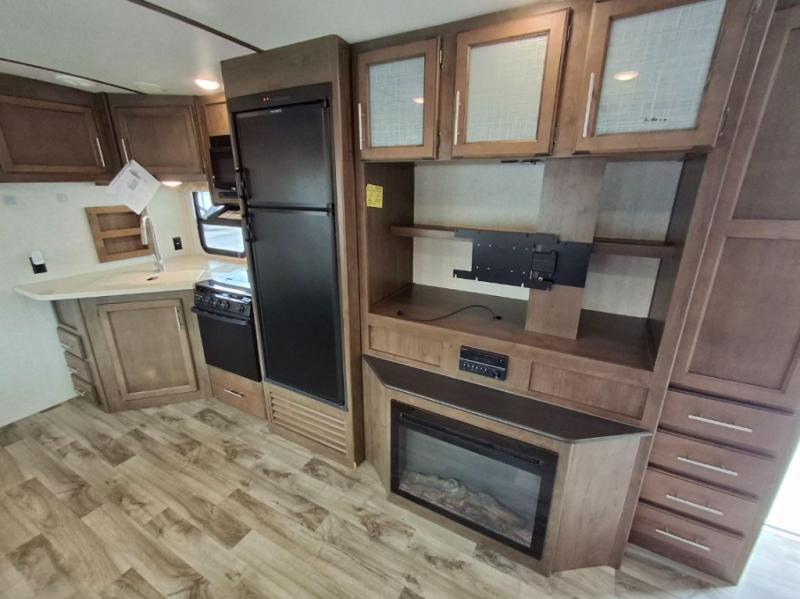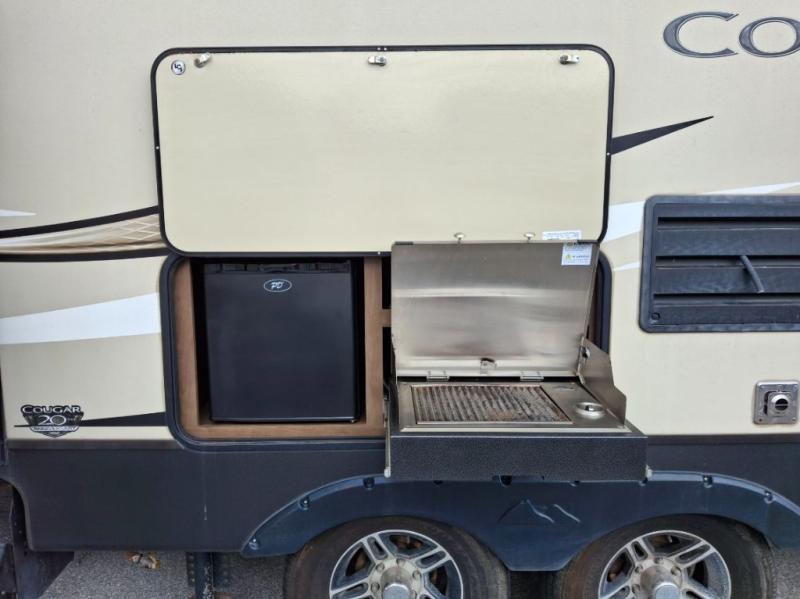 If you are a couple that likes to invite friends on your trips then this Cougar Half-Ton Series travel trailer 26RBS is ready for you! You will find the single slide out with a booth dinette and tri-fold sleeper sofa provides plenty of seating as well as extra sleeping space for overnight guests. You and your friends can enjoy the entertainment center and fireplace along the opposite side while talking about the day. The front private bedroom allows you to have your own space when needed, plus the second entry into the trailer comes in handy. Outside, you can make burgers on the capital grill and store drinks in the mini refrigerator when wanting to be outdoors where the action is. The Ground Control and power jack will make setting up easy, plus there is more to love.