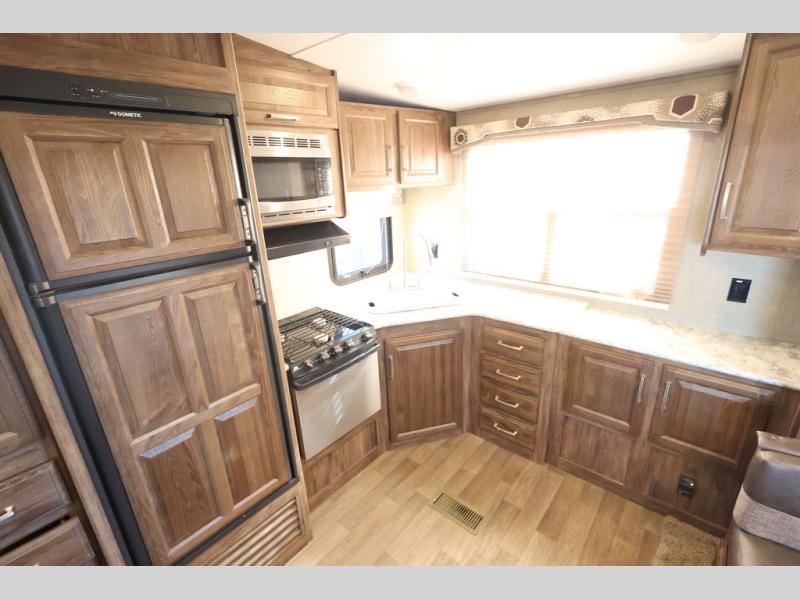 With any Keystone Cougar Half-Ton Series fifth wheel you will be able to camp in any weather with the forced-air heated and enclosed underbelly with enclosed dump valves and astorfoil insulated slide floor. If you need to stay cool or warm, these units have you covered. Inside you are sure to love the foil wrap seamless galley and lavatory countertops. The master bedroom offers a queen bed in each model for more sleeping space for the owners. There are many more features you will want on your next fifth wheel, come get your favorite Cougar Half-Ton Series model today.