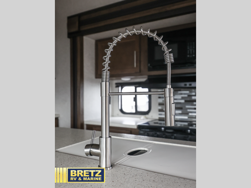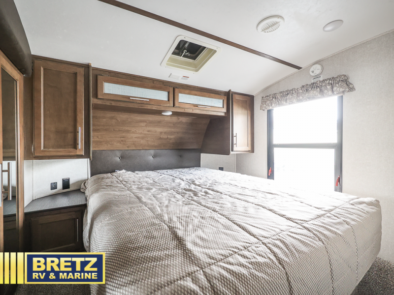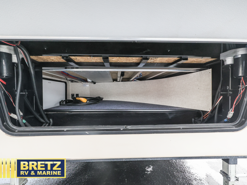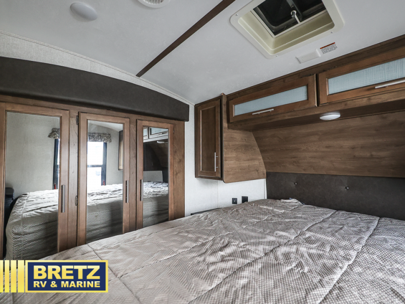 The chef in the family is sure to enjoy preparing meals on the kitchen island and being able to view the pop-up TV from the rear tri-fold sleeper sofa and the kitchen area in this Keystone Cougar Half-Ton Series fifth wheel model 27RLS. You will find that the triple slide outs provide more interior floor space to move around inside. Outside the unobstructed pass-through storage compartment makes loading and unloading your outdoor gear a breeze. And the Hitch Vision backup mirror provides a safe and easy way to hitch up and park at any destination.