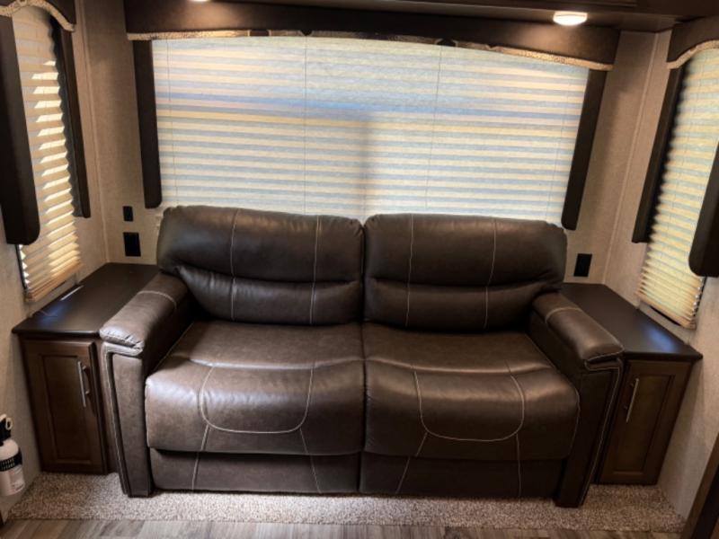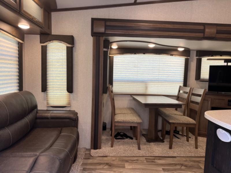 The chef in the family is sure to enjoy preparing meals on the kitchen island and being able to view the pop-up TV from the rear tri-fold sleeper sofa and the kitchen area in this Keystone Cougar Half-Ton Series fifth wheel model 27RLS. You will find that the triple slide outs provide more interior floor space to move around inside. Outside the unobstructed pass-through storage compartment makes loading and unloading your outdoor gear a breeze. And the Hitch Vision backup mirror provides a safe and easy way to hitch up and park at any destination.