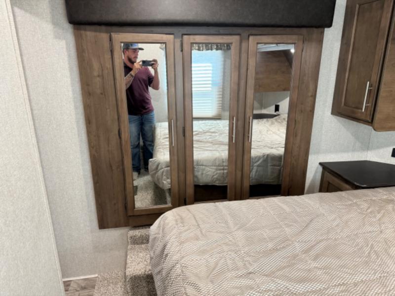 With any Keystone Cougar Half-Ton Series fifth wheel you will be able to camp in any weather with the forced-air heated and enclosed underbelly with enclosed dump valves and astorfoil insulated slide floor. If you need to stay cool or warm, these units have you covered. You can even take your bikes and additional totes along with the 225 lb. capacity folding exterior bike/storage rack. Inside you are sure to love the foil wrap seamless galley and lavatory countertops. The master bedroom offers a queen bed in each model for more sleeping space for the owners. There are many more features you will want on your next fifth wheel, come get your favorite Cougar Half-Ton Series model today.