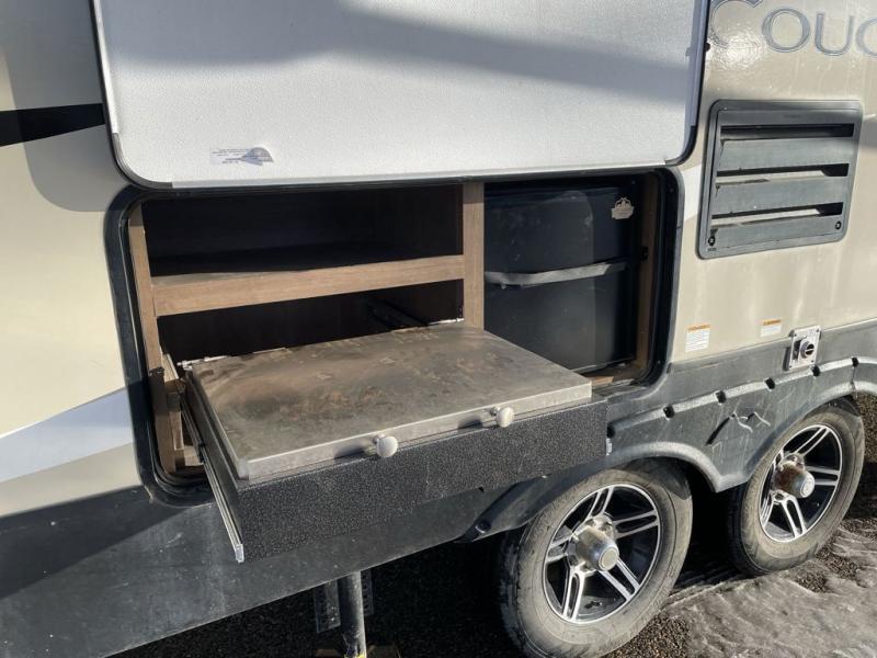 With any Keystone Cougar Half-Ton Series travel trailer you will be able to camp in any weather with the forced-air heated and enclosed underbelly with enclosed dump valves and astorfoil insulated slide floor. If you need to stay cool or warm, these trailers have you covered. You can even take your bikes and additional totes along with the 225 lb. capacity folding exterior bike/storage rack. Inside you are sure to enjoy the gourmet stainless steel under mount sink with the upgraded chef's faucet with sprayer when cleaning your fruits and vegetables or washing the dishes. The master bedroom offers a king bed in each model for more sleeping space for the owners. There are many more features you will want on your next travel trailer, come get your favorite Cougar Half-Ton Series model today.
