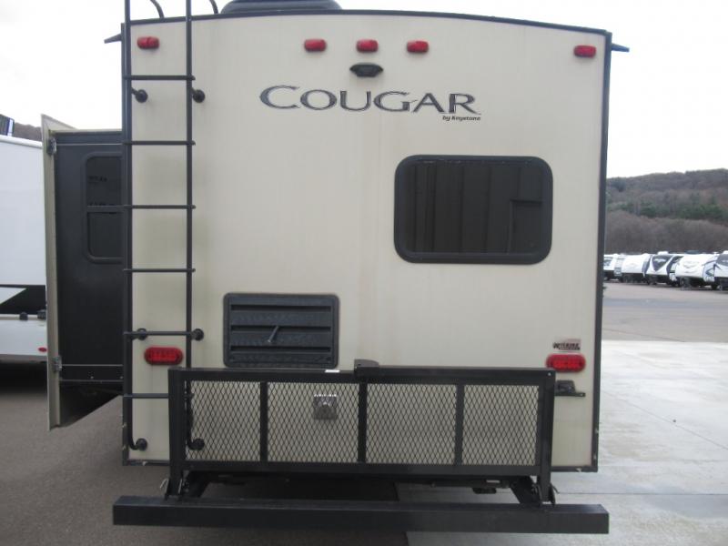 With any Keystone Cougar Half-Ton Series fifth wheel you will be able to camp in any weather with the forced-air heated and enclosed underbelly with enclosed dump valves and astorfoil insulated slide floor. If you need to stay cool or warm, these units have you covered. You can even take your bikes and additional totes along with the 225 lb. capacity folding exterior bike/storage rack. Inside you are sure to love the foil wrap seamless galley and lavatory countertops. The master bedroom offers a queen bed in each model for more sleeping space for the owners. There are many more features you will want on your next fifth wheel, come get your favorite Cougar Half-Ton Series model today.