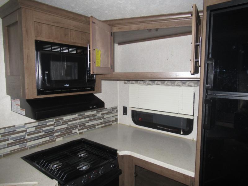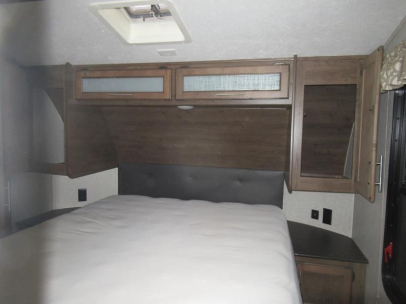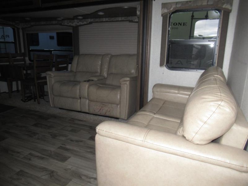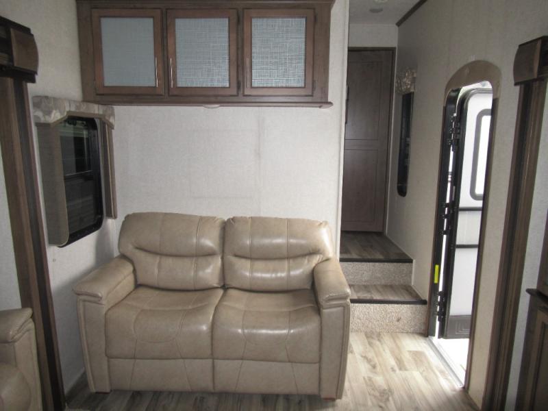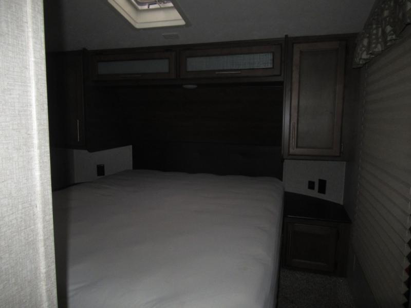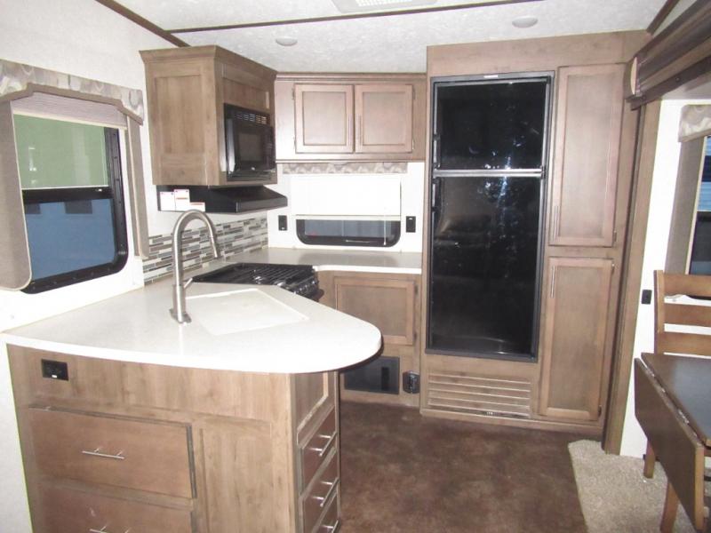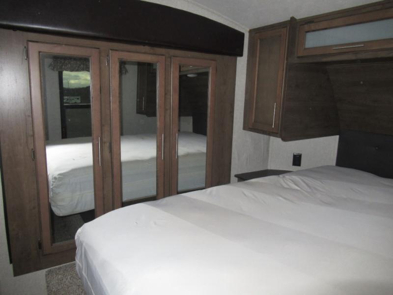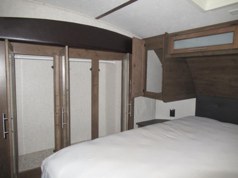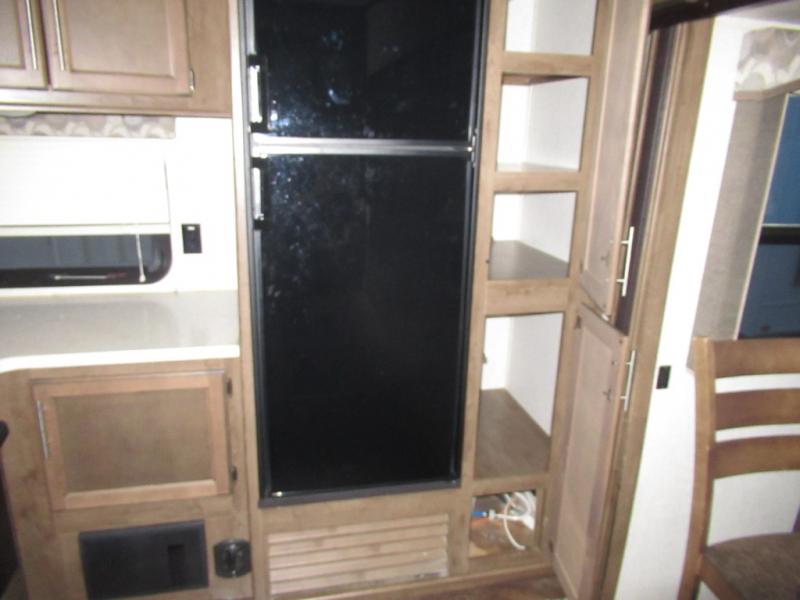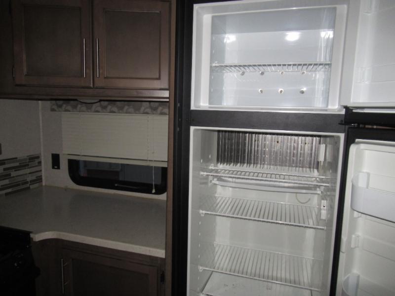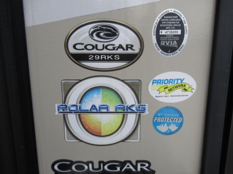 If you have been searching for a fifth wheel that is tailored to your needs, take a look at this Keystone Cougar Half-Ton Series model 29RKS. The Hitch Vision backup mirror provides a safe and easy way to hitch up and park in any spot including at the store on your way to the campsite. You have the choice of cooking inside in the rear kitchen, or outside on the capital grill, and storing your drinks in the mini refrigerator. The triple slide outs allow you to move around the main living/kitchen area freely without feeling cramped, and the master bedroom is roomy also. I'm sure you can imagine relaxing in the theater seats on a cold night after a long day outside. Come see what else will make this the perfect RV for you and your family's lifestyle.