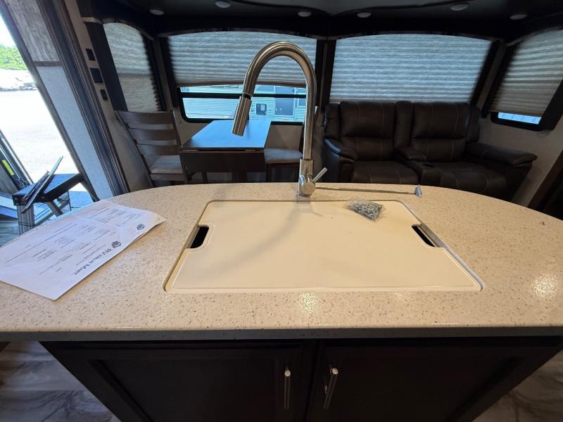 This Cougar Half-Ton Series travel trailer 32RLI will provide plenty of room for relaxation, entertaining, and sleeping for 5. You are sure to find your favorite space to call your own from all the furniture provided and options to choose from. The dual slides in the combined living and kitchen area allow extra floor space for entertaining inside. There is a kitchen island for the chef in the family to prepare and serve meals, as well as someone to wash the dishes. There are plenty more inside features, plus outside the two awnings provide another entertaining space outdoors safe from the sun and elements, and the Ground Control and power jack offer quick and easy set up and hitch up time. Take a look today!