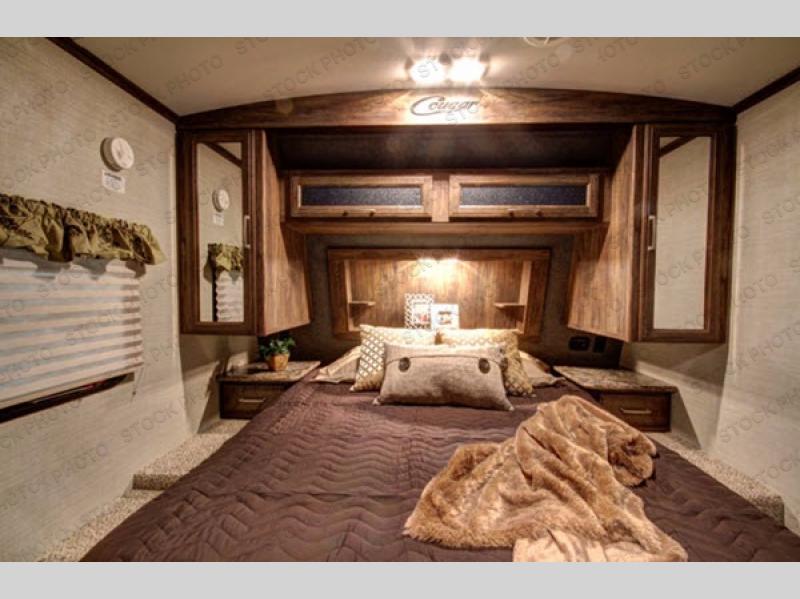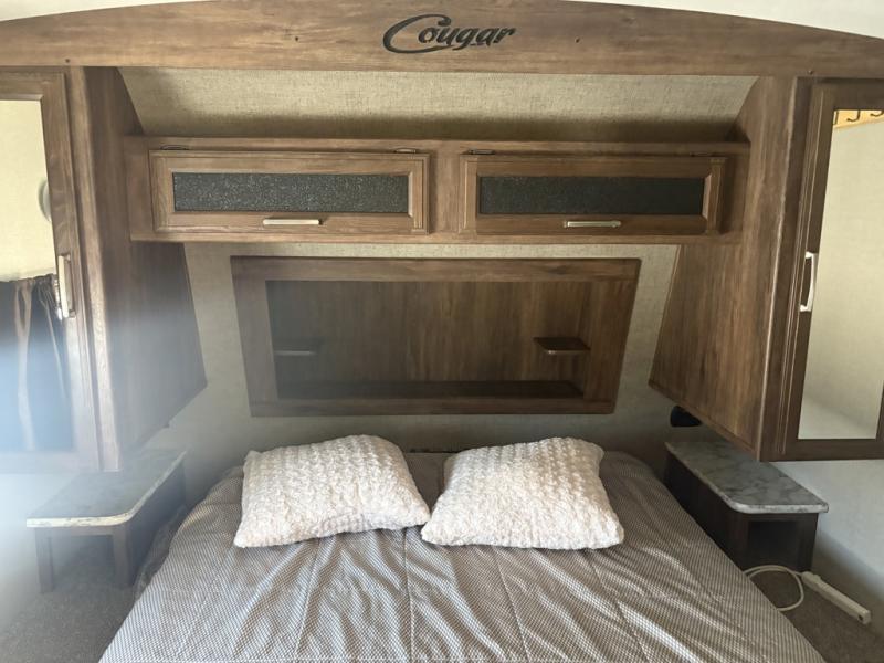 If you have been looking for dual entry and a walk-through bath in a travel trailer then take a step inside this rear living Cougar X-Lite travel trailer 28RLS offering plenty of space with a large slide, and many more comforts of home.