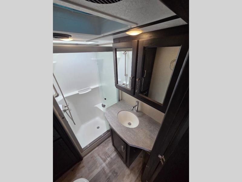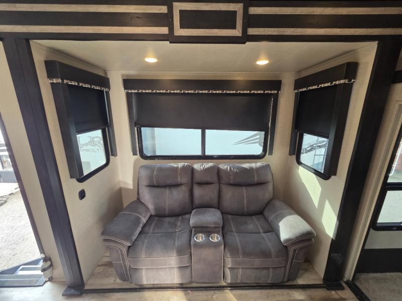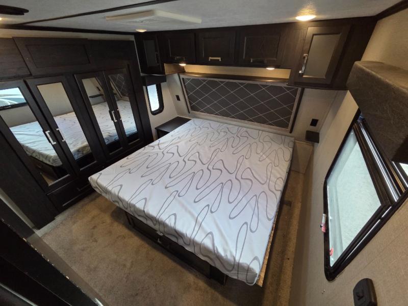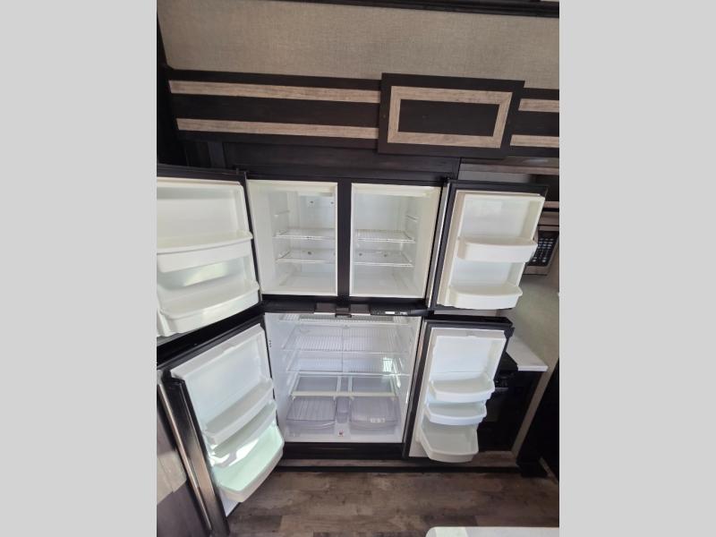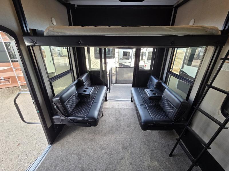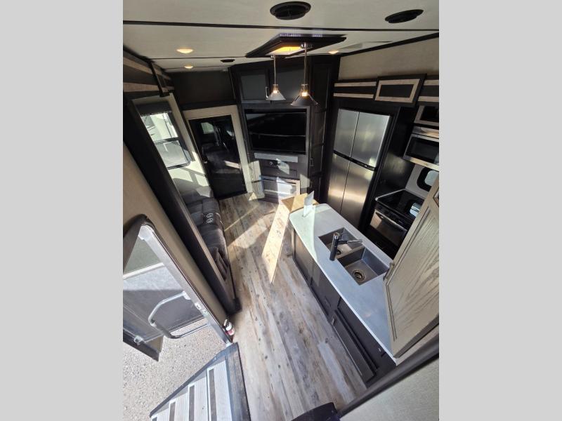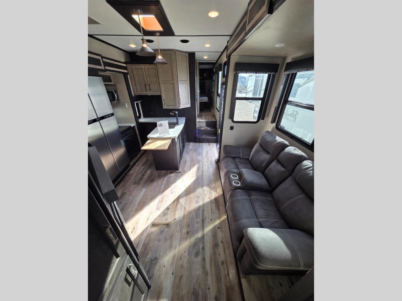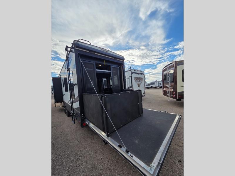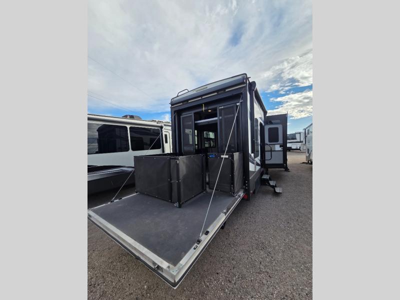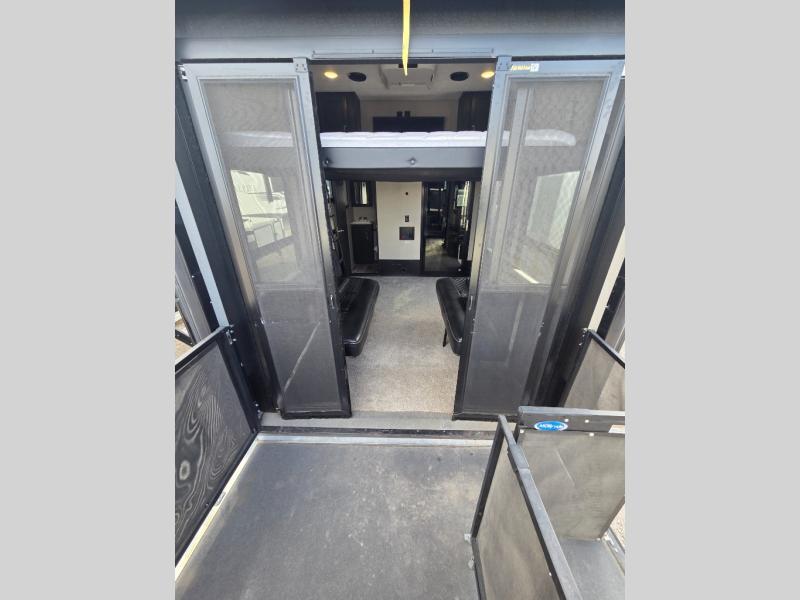 Fuzion toy hauler fifth wheels are "More than a Garage." They give you a place to store your toys while you are traveling yet give you the comforts of home. All of the countertops are solid surfaces, so cleanup is a breeze and all the storage in these units are solid cherry hardwood. The things that set Fuzion apart is the 5K Interlock System that they have created. This system is the toughest tie-down around! Each tie is welded into the metal which makes each tie down virtually unbreakable and can hold up to 5,000 lbs. Along with the tie-down system, you also have Dexter EZ Lube Axles which allow grease to flow to both inner and outer bearings easily. The In-Command RV automation and control system is something you don’t want to miss out on. This system controls all the lights, the 6pt Hydraulic Level-Up System, the awning, plus so much more all within an app on your phone. You don't need to settle, choose the "Hottest Brand in the Industry."