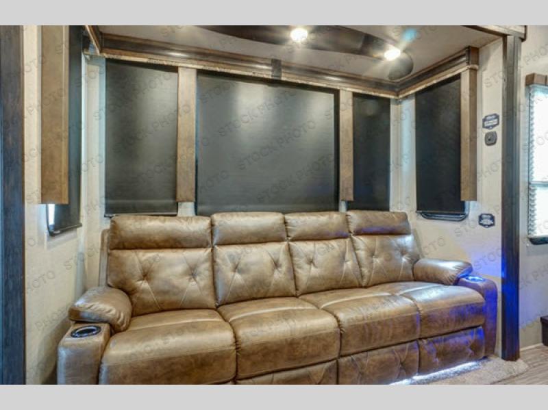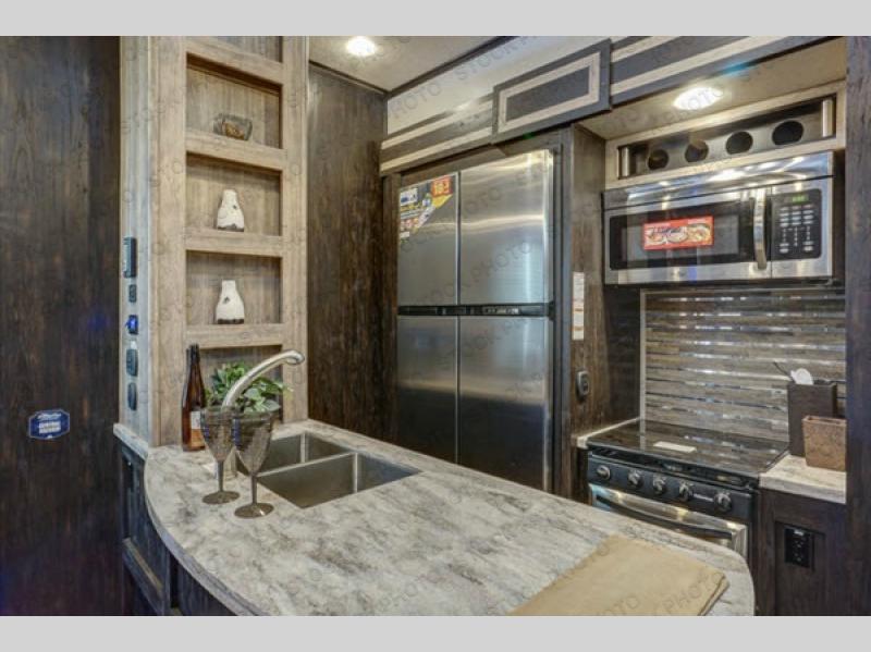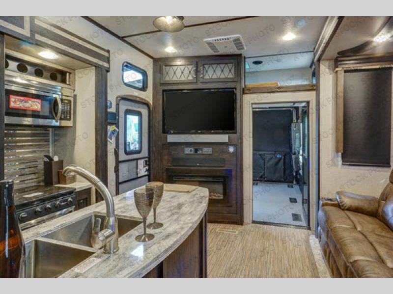 Fuzion toy hauler fifth wheels are "More than a Garage." They give you a place to store your toys while you are traveling yet give you the comforts of home. All of the countertops are solid surfaces, so cleanup is a breeze and all the storage in these units are solid cherry hardwood. The things that set Fuzion apart is the 5K Interlock System that they have created. This system is the toughest tie-down around! Each tie is welded into the metal which makes each tie down virtually unbreakable and can hold up to 5,000 lbs. Along with the tie-down system, you also have Dexter EZ Lube Axles which allow grease to flow to both inner and outer bearings easily. The In-Command RV automation and control system is something you don’t want to miss out on. This system controls all the lights, the 6pt Hydraulic Level-Up System, the awning, plus so much more all within an app on your phone. You don't need to settle, choose the "Hottest Brand in the Industry."