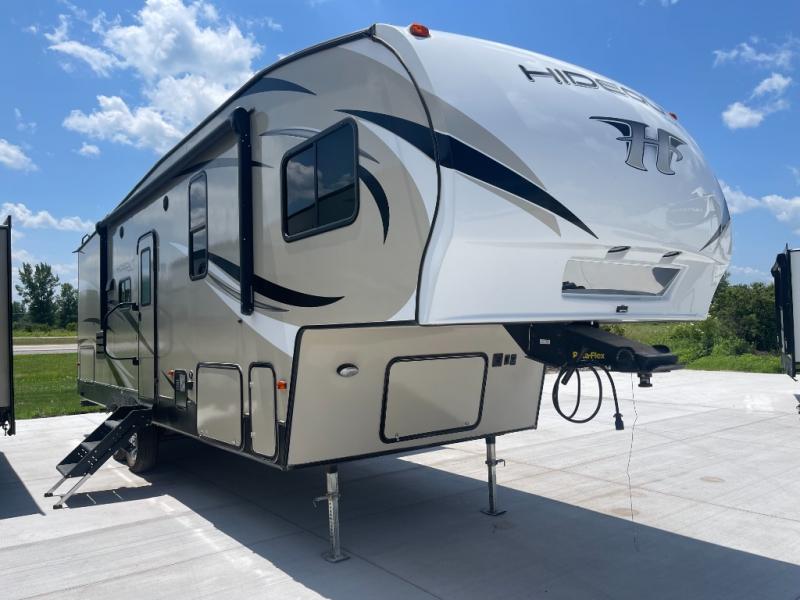 For any trip whether near or far you will want a Hideout fifth wheel by Keystone RV. These models are lightweight which makes them easy to hook-up and tow. Just load up your belongings and head out for a weekend away in your own Hideout retreat. A few key features inside each model include pleated shades in the living area, a high-rise kitchen faucet, plus full strutted storage under the master bed. The exterior has a gel coated Maxturn fiberglass front cap, black radius window frames, hurricane straps reinforced structure, and an exterior shower. What are you waiting for? Come enjoy your own private hideout with a Keystone Hideout travel trailer!