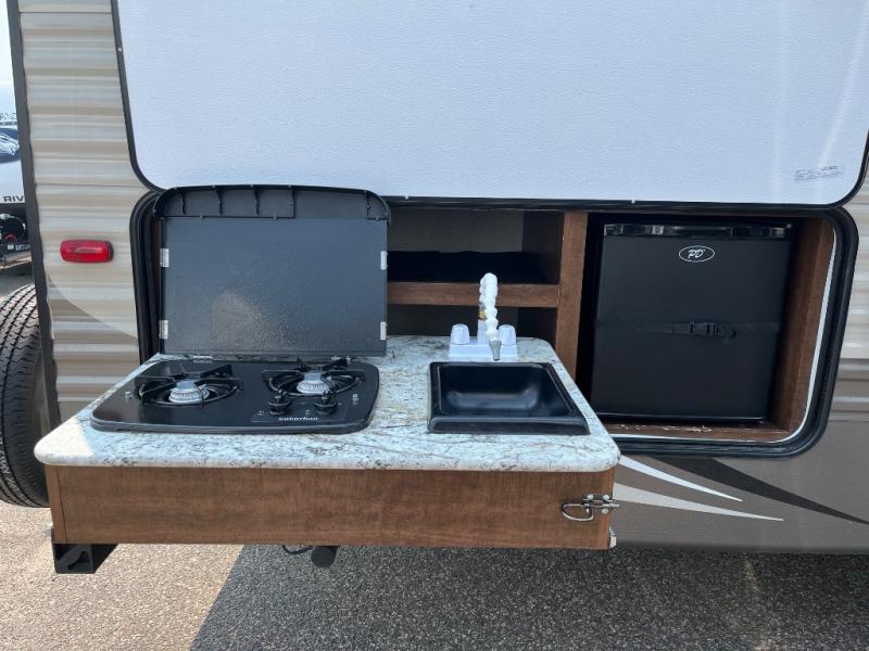For any trip whether near or far you will want a Hideout travel trailer by Keystone RV. These models are lightweight which makes them easy to hook-up and tow. Just load up your belongings and head out for a weekend away in your own Hideout retreat. Inside you will find surround sound speakers, a Bluetooth DVD/CD/MP3 stereo, as well as a range with hi-output burner and a high rise kitchen faucet. The drawers are easy to open and close with the ball bearing drawer guides plus with the 6 cu. ft. refrigerator you can easily stock up on all of the food that you will need while you are away from home. What are you waiting for? Come enjoy your own private hideout with a Keystone Hideout travel trailer!