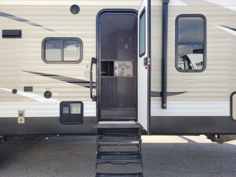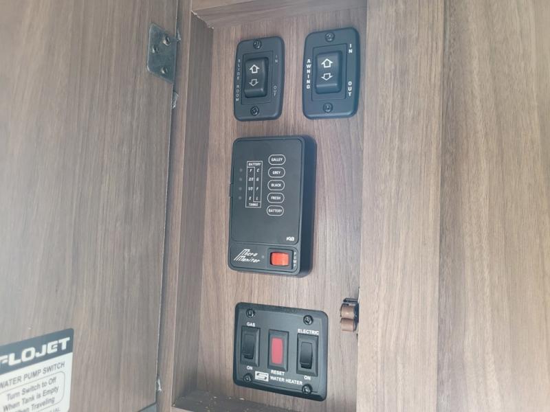Load up your family of ten and come see just how easy camping can be in this single slide out Hideout 28BHSWE travel trailer. Your kids will enjoy the rear bunk beds or you can even bring along a friend or two. You are sure to make plenty of memories around the u-dinette as you swap adventure stories from the day. Outside you will find an outdoor kitchen with a pull out stove and a handy refrigerator where you can store your drinks. Another key feature is the two entry doors, now you can easily slip back inside after going out for an evening walk under the stars.