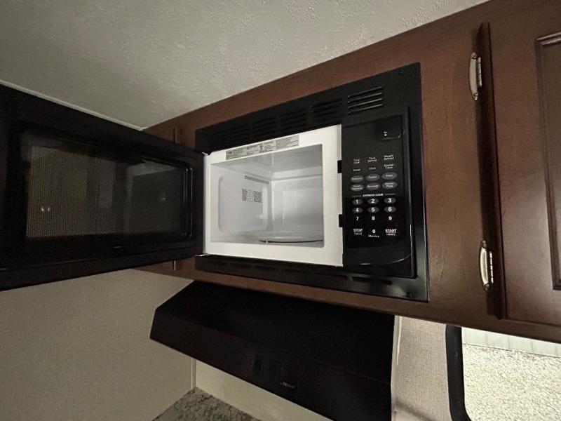 When you own a Keystone Hideout travel trailer, you own an RV that has all of the right features at the right price. The oversized pass-through storage is a truly wonderful amenity because it gives you room to bring along all of your larger luggage items that normally don't fit into your packing plans, like a set of golf clubs or hunting rifles, and you will thoroughly enjoy taking advantage of the interior surround sound speakers as you watch an action-packed movie or listen to your favorite jazz tunes. The more time that you spend in your Hideout travel trailer, the more you will appreciate the 20,000 BTU furnace that has been included to help you keep the interior at the perfect temperature no matter what climate you've traveled to.