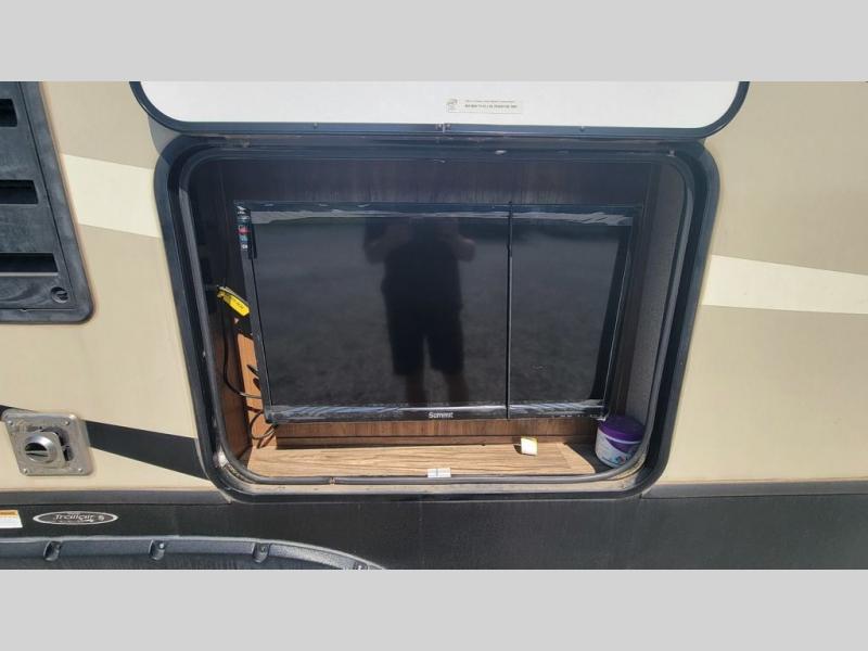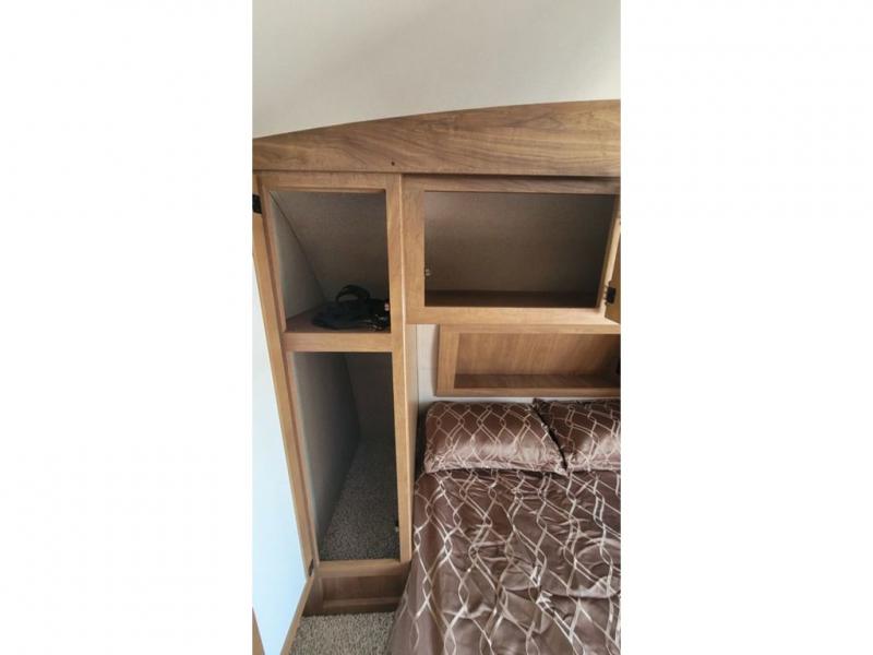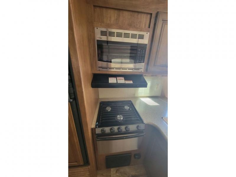 Bring along your family of four for a memorable time camping in this single slide out, rear living area, double entry door, Laredo 288RL travel trailer by Keystone RV. You have chairs in the rear and a tri-fold sofa sleeper that you can use for relaxing or hanging out with family. In the front bedroom, you will find a queen bed, two wardrobes, and an entry door which leads outside. There is also a private entrance from the bedroom into the bathroom for added convenience. Outside you will be able to enjoy the extra storage space and the exterior entertainment hookup, and more!