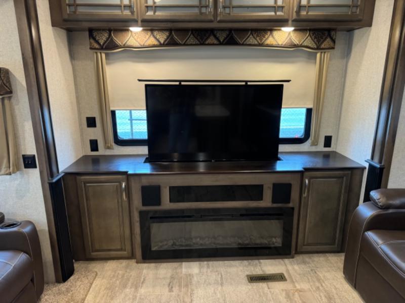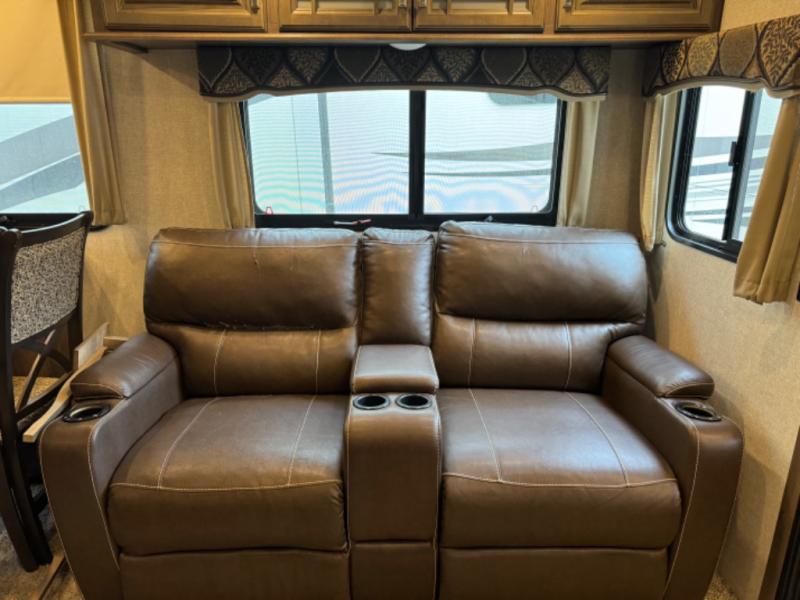 It's time to entertain other campers inside or outside in this Montana fifth wheel 3130RE. Just imagine your guests watching the rear entertainment center with a pop-up HDTV, and a fireplace below while you are making snacks. There is plenty of furniture for everyone including the theatre seats with power recliners. The chef will love the counter space on the center island, the 18 cu. ft. RV refrigerator, and all the appliances when making meals. Be sure to pack the pantry with all your favorites including enough coffee to be used at the coffee station. When the weather is just right, you can move the party outside to the exterior entertainment center with 32" HDTV. You will also find two awnings as well. Take a look today!